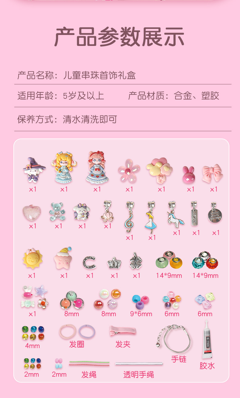 Juguetes de bricolaje hechos a mano con cuentas para niños princesa con joyas caja de regalo para niñas caja de video regalo de cumpleaños transfronterizo