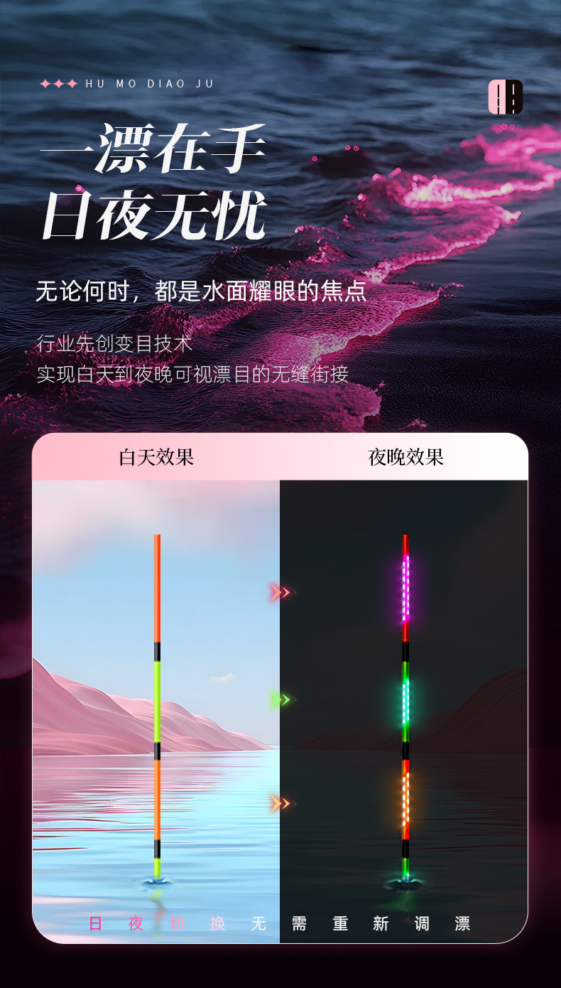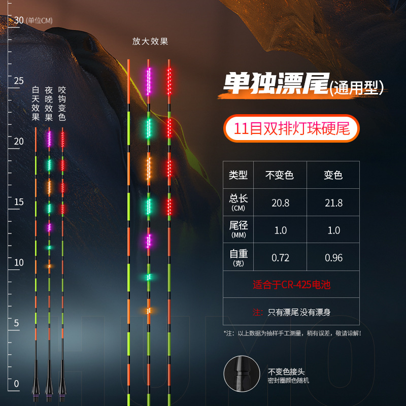 Láser de cola dura LED flotador de cola luminoso día y noche doble gancho de mordida decoloración flotador electrónico de alta sensibilidad pesca nocturna flotador de cola separada
