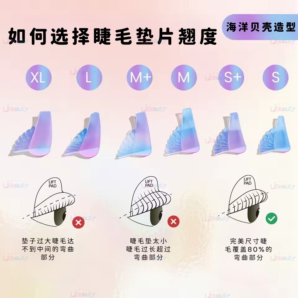 6 pares de juntas de elevación de pestañas de perlas degradadas para la tienda de pestañas hermosas