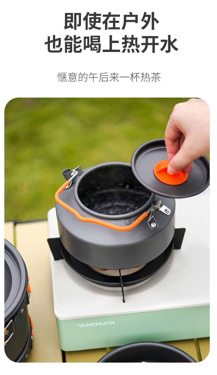 Utensilios de cocina al aire libre, juego de ollas, vajilla de camping, utensilios de camping, equipo de camping, juego completo de tetera, sartén, horno de tarjeta de cocción, transfronterizo