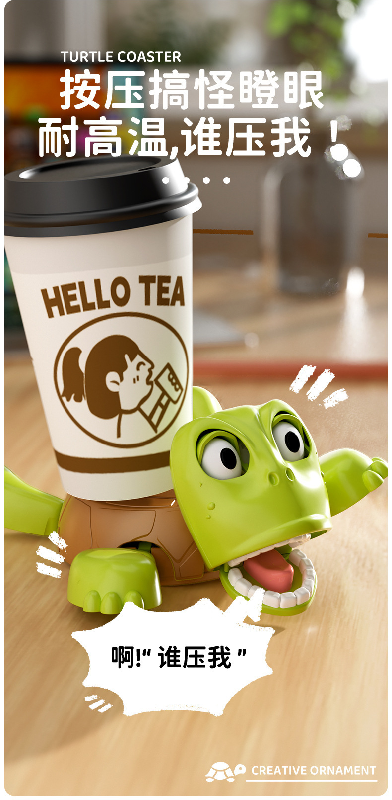 Tik Tok, el mismo posavasos de tortuga, adornos de escritorio divertidos creativos, portavasos, ojos fijos, lindos y divertidos, posavasos Wang Ba