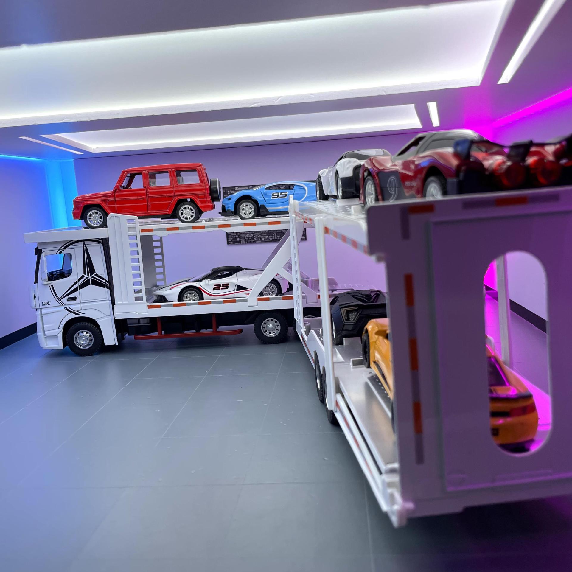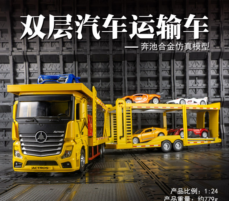 Hengteng modelo de coche de aleación 1:24 de doble capa plana coche Rush Truck con sonido y luz modelo de coche de juguete adornos