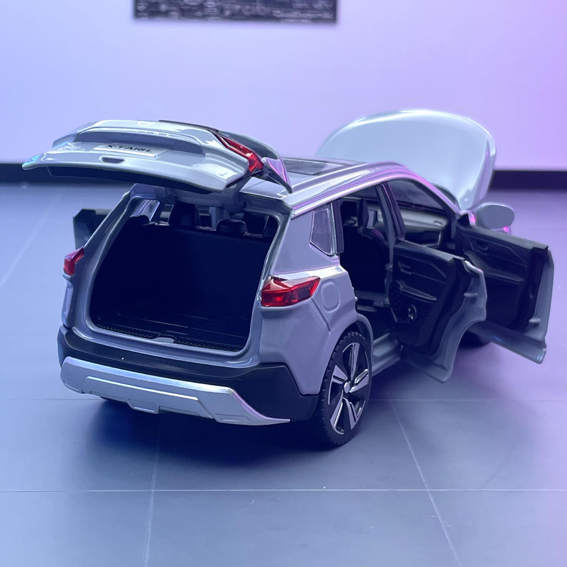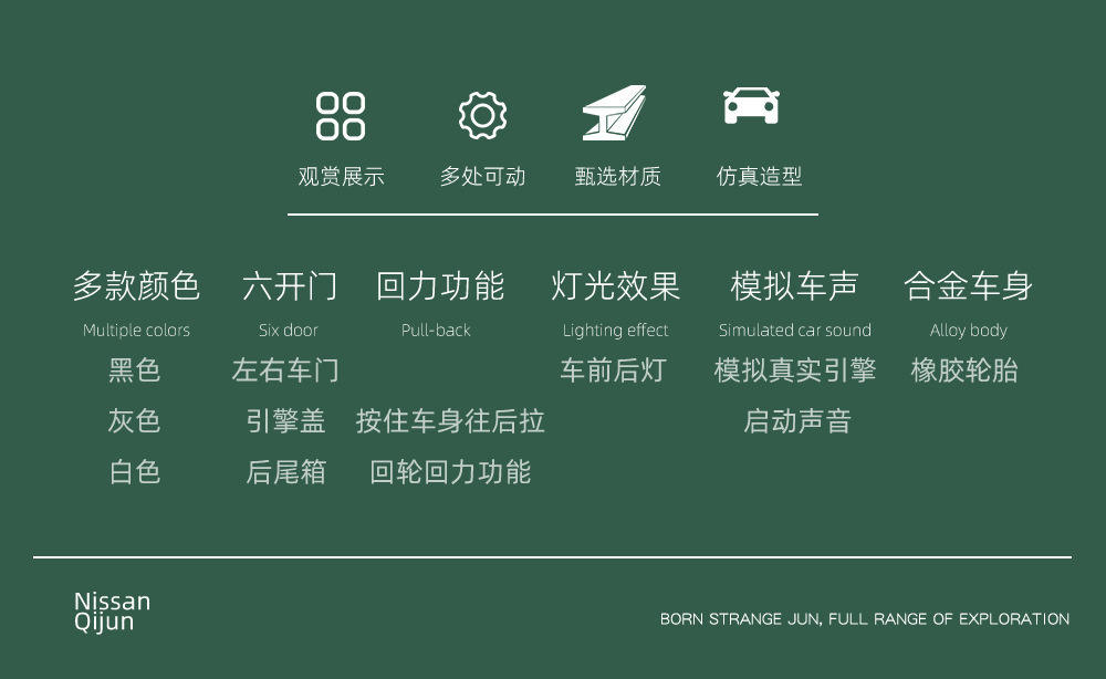 Zhongyuan xinghejin modelo de coche 1:32 Nissan Qijun vehículo todoterreno Tire hacia atrás coche de juguete modelo de música decoración caja de polvo