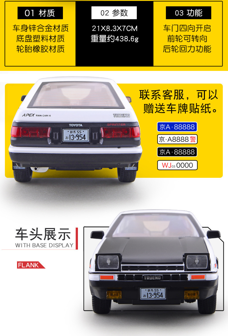 Jianyuan aleación coche modelo 1:24 cabeza texto DAE86 tire hacia atrás con sonido y luz juguete coche música modelo decoración colección