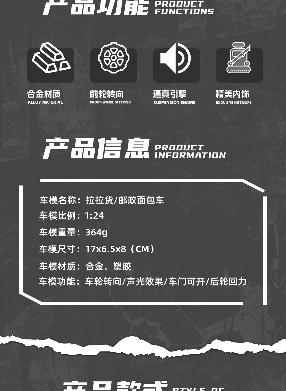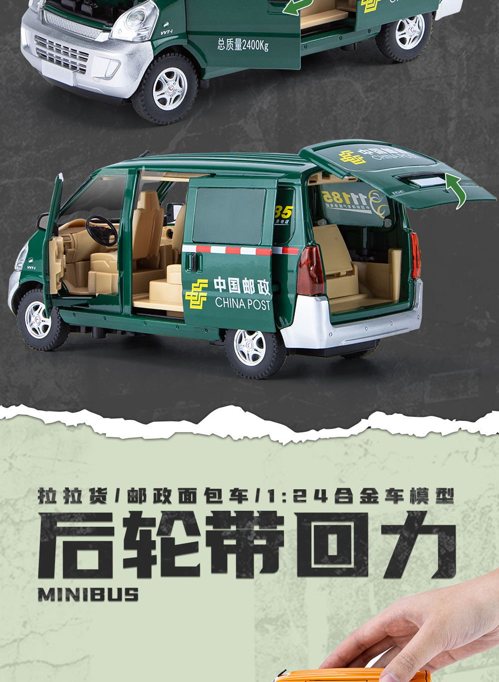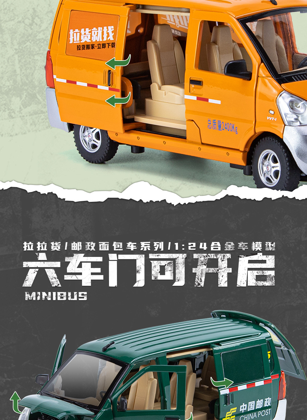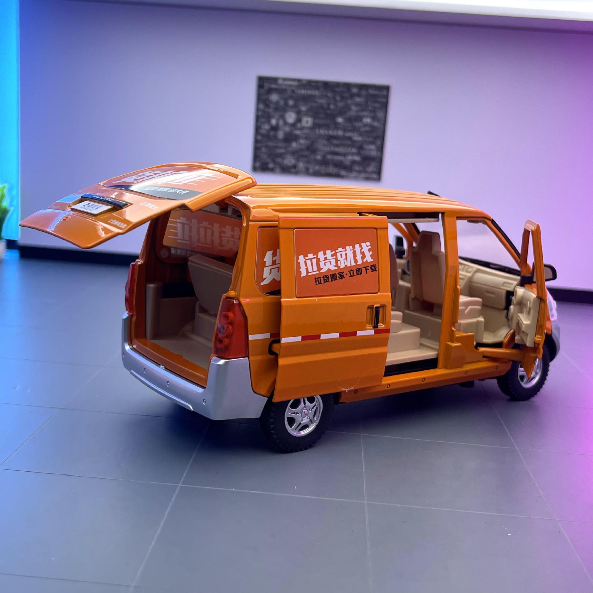 Aleación 1:24 wuling rongguang carga Lala modelo de coche pull back sonido y luz juguete postal versión van modelo adornos