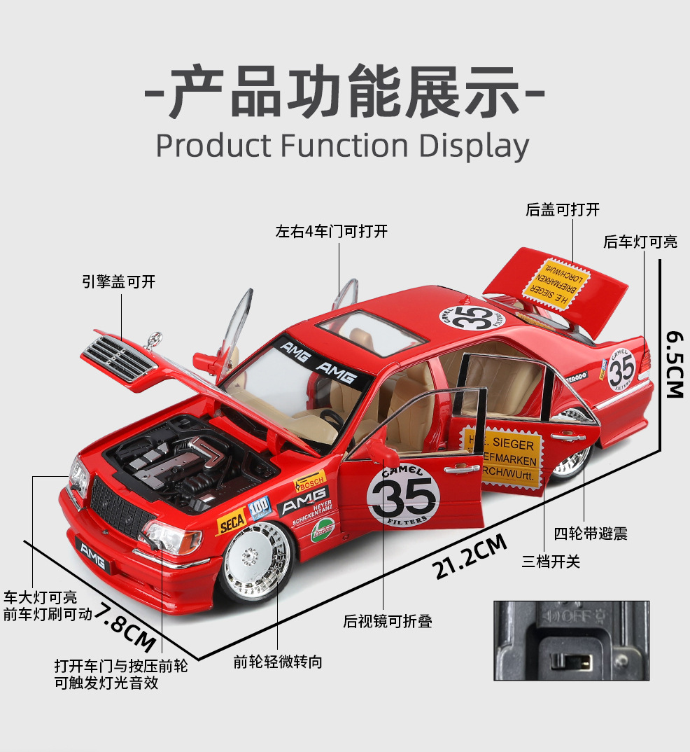 Modelo de coche de aleación Weili 1:24 coche clásico cabeza de tigre Ben versión modificada con sonido y luz modelo de sonido de coche de juguete deslizante