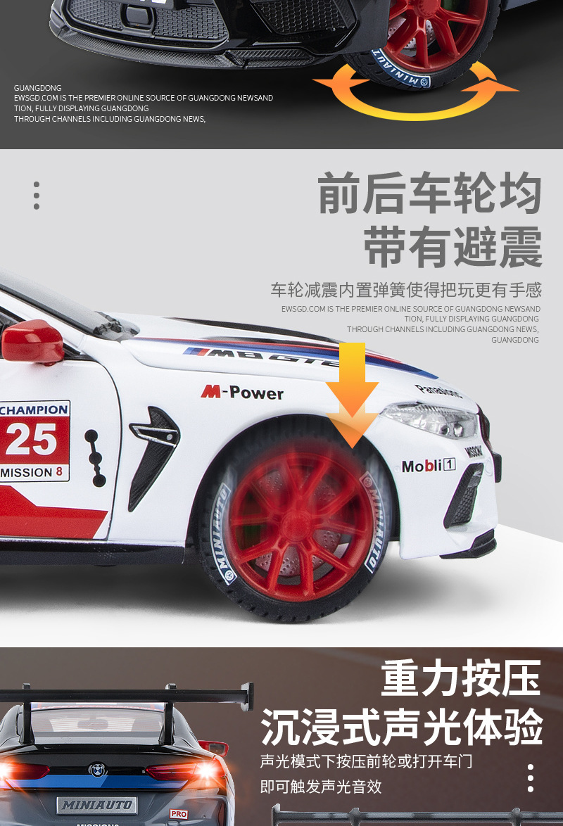 Modelo de coche de aleación Jianyuan 1:24 Baoma M8 versión de la carretera Echo de luz y sonido para niños modelo de coche decoración figura