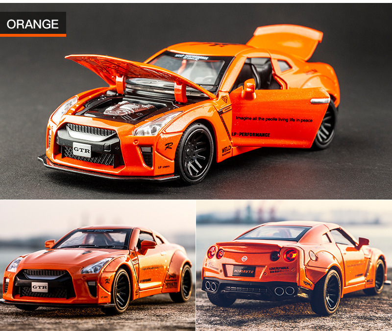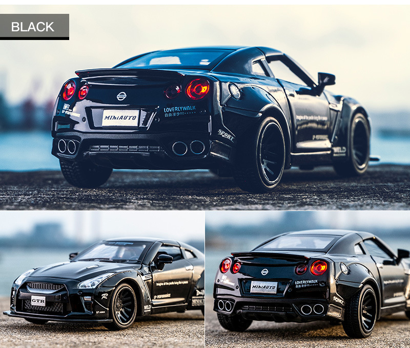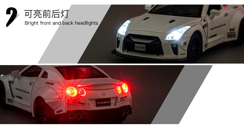 Jianyuan aleación 1:32 Nissan GTR coche deportivo modelo Tire hacia atrás el sonido y la luz 4 Puerta Abierta modelo de coche de juguete decoración al por mayor