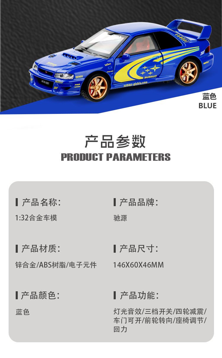 Zhongyuanxing Car Model 1:32 Subaru Impreza Alloy Rally Car Sound Model Adornos