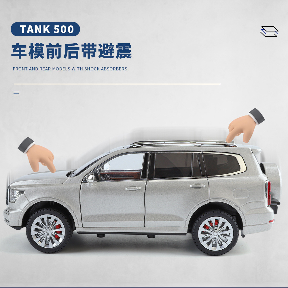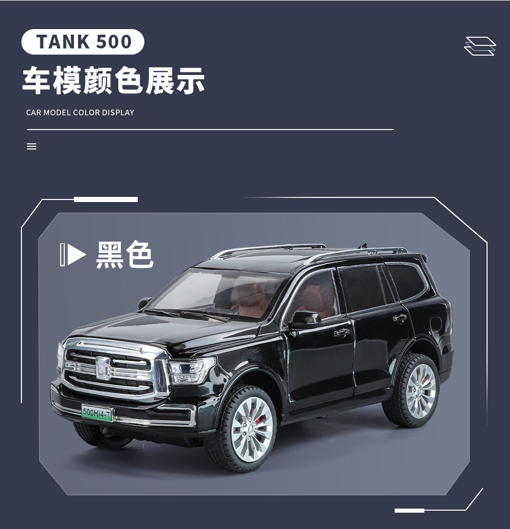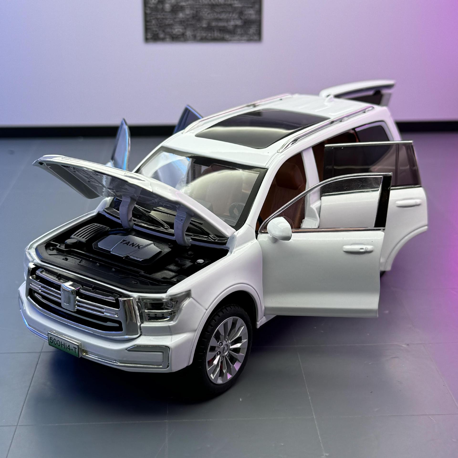 Zhiguan World Car Model 1 a 24 Tank 500 Vehículo todoterreno de aleación Luz y sonido Tackback Coche de juguete Decoración del modelo de sonido