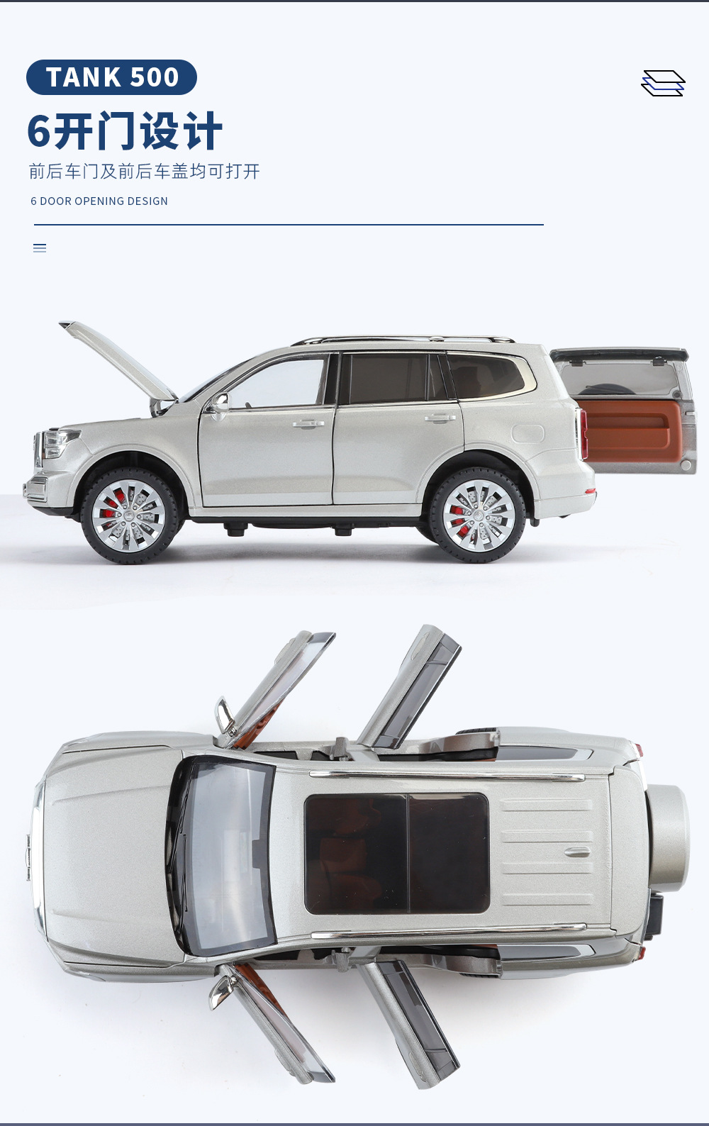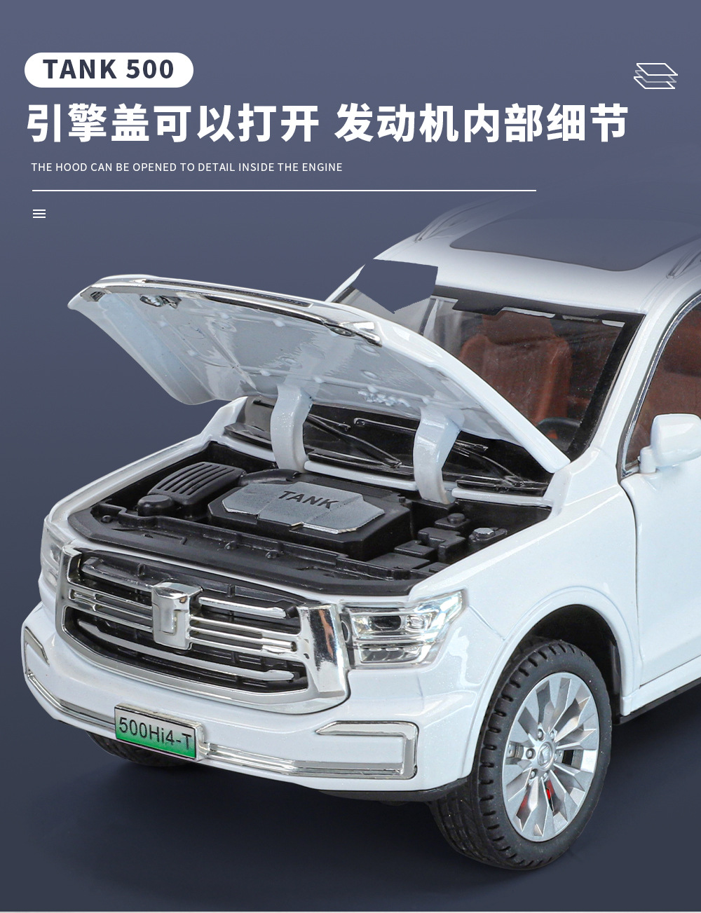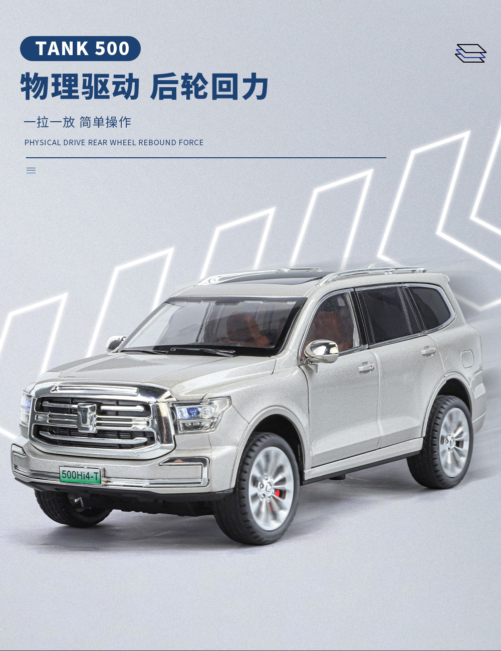 Zhiguan World Car Model 1 a 24 Tank 500 Vehículo todoterreno de aleación Luz y sonido Tackback Coche de juguete Decoración del modelo de sonido