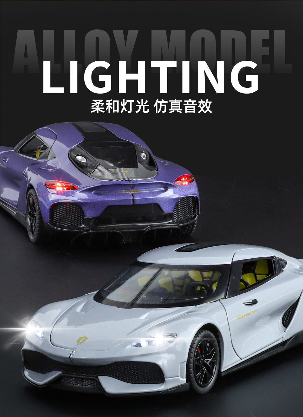 Modelo de coche Lijiaxin 1:24 Koenigsegg modelo de efecto de sonido de coche deportivo de aleación Gemini