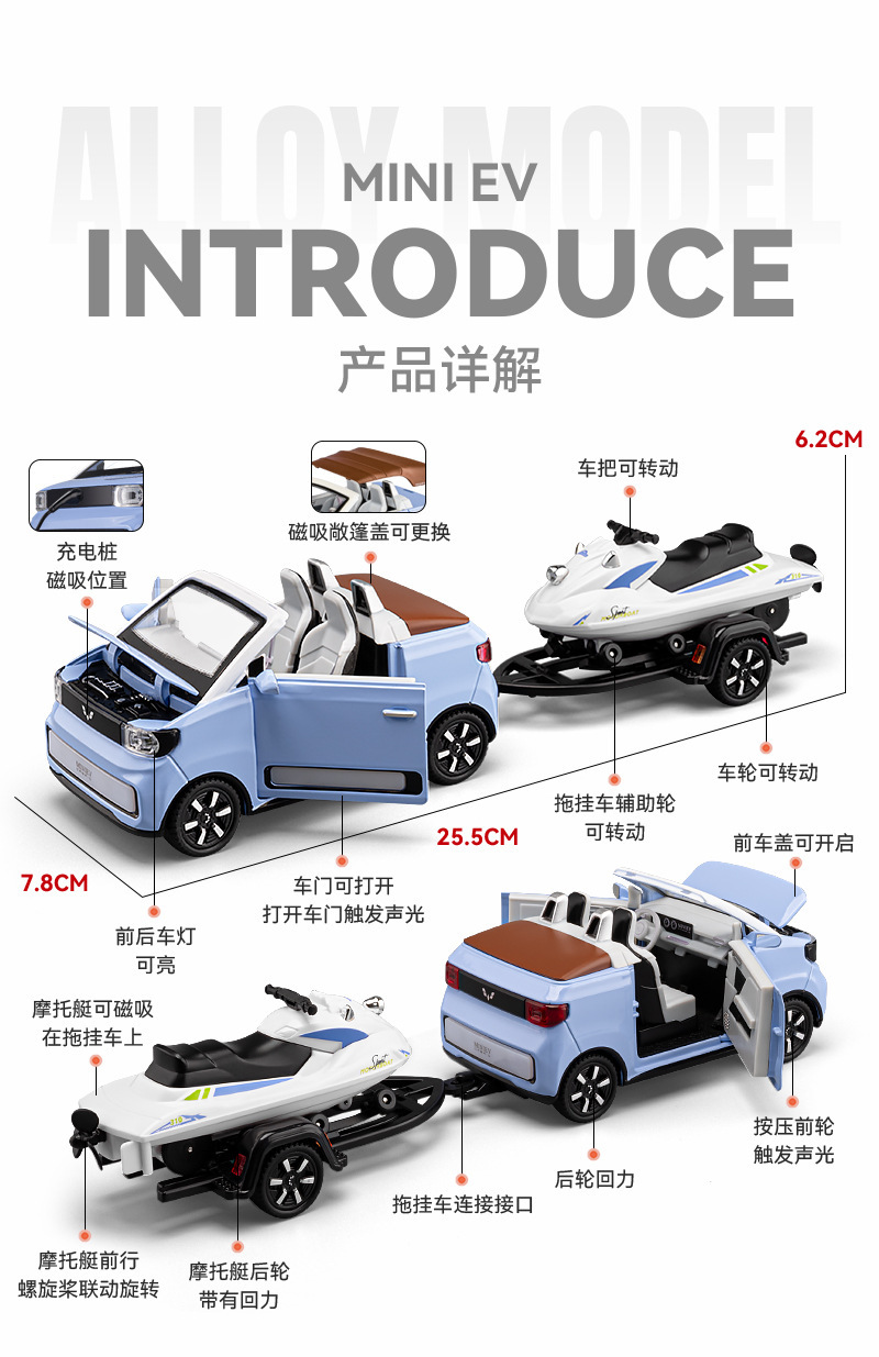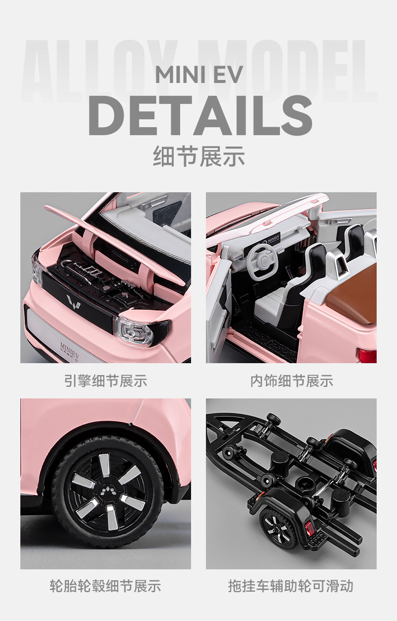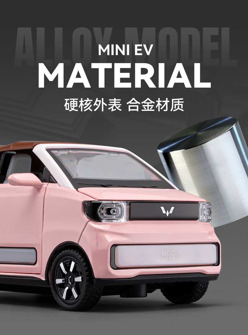 Coche a modelo de coche de aleación Wuling Mini convertible coche de aleación con moto de motor coche de juguete modelo de luz y sonido