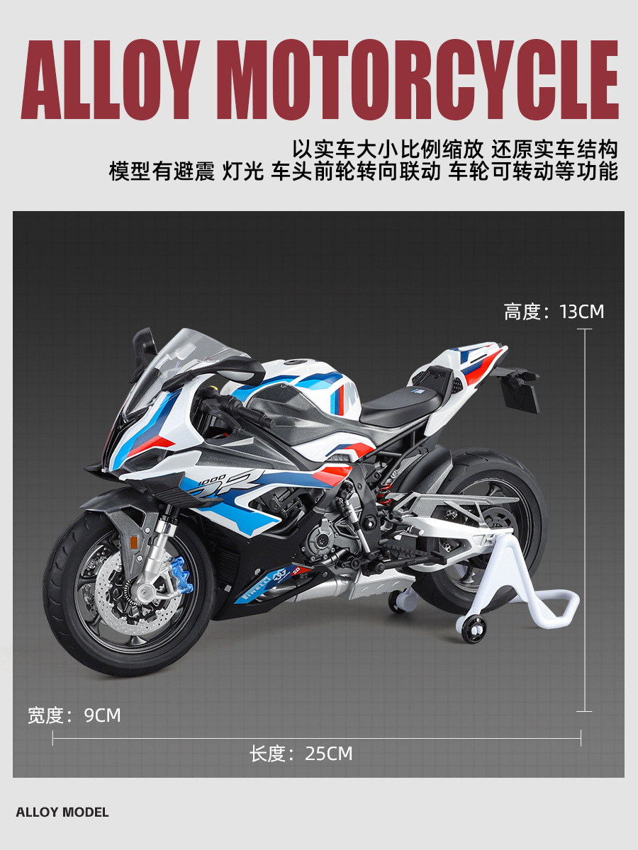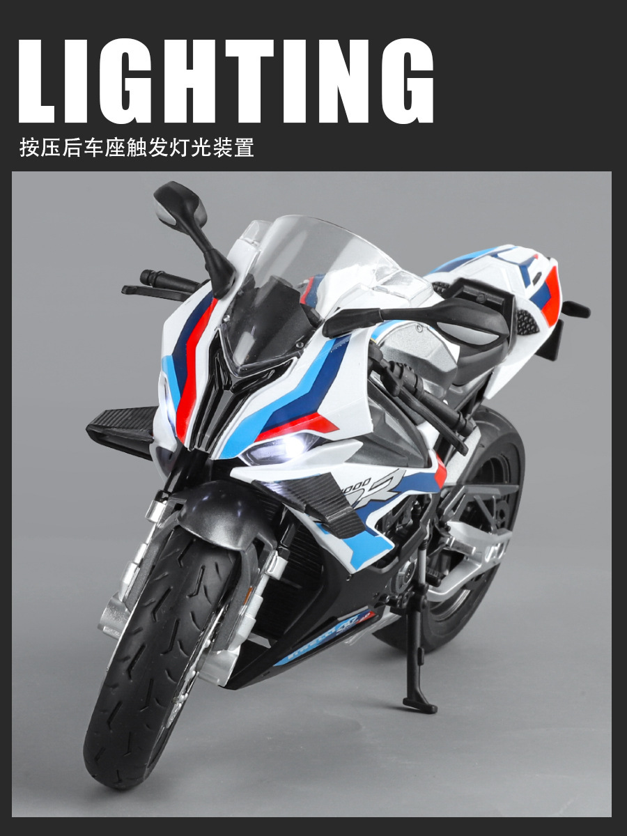 Modelo de coche Huayi 1 a 9 Baoma M versión doble R1000 aleación modelo de motocicleta decoración iluminación juguetes para niños