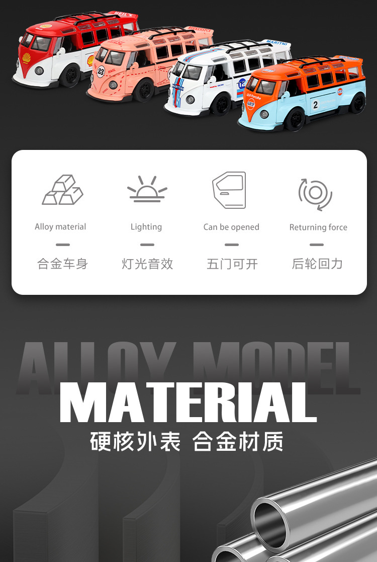 Zhongyuanxing Car Model 1:32 Volkswagen T1 versión de la gula del autobús de la aleación de retorno del automóvil de juguete modelo de efecto de sonido