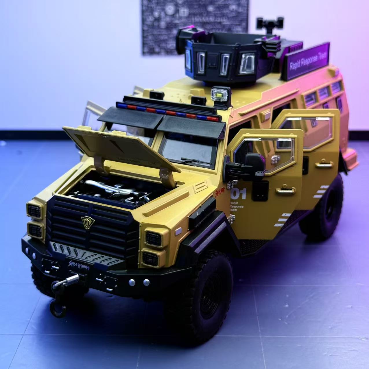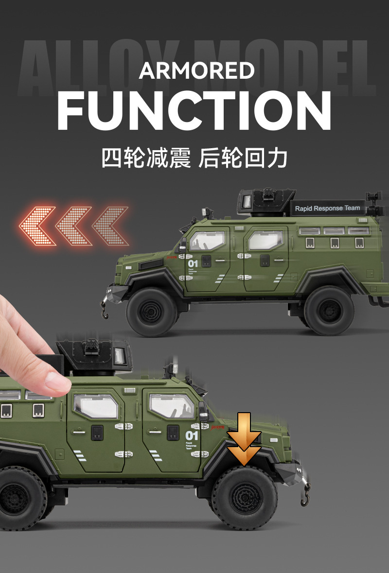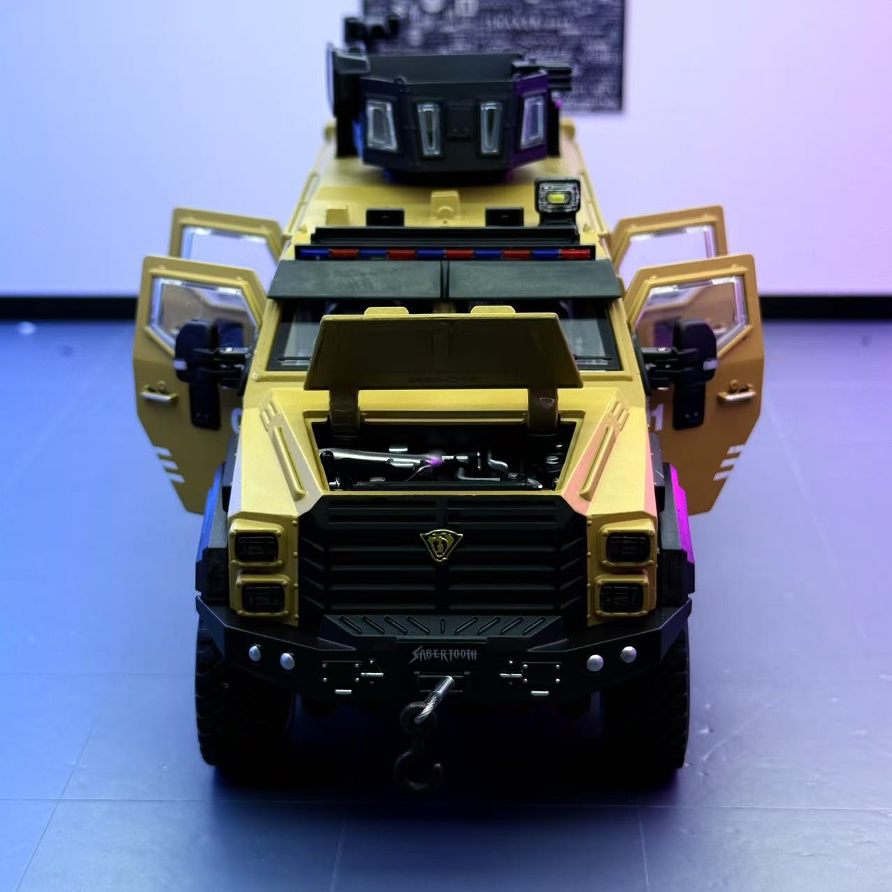 Coche a modelo de coche 1:24 tigre dientes de sable vehículo blindado coche de calle versión de coche todoterreno de aleación modelo de luz y sonido decoración juguetes para niños
