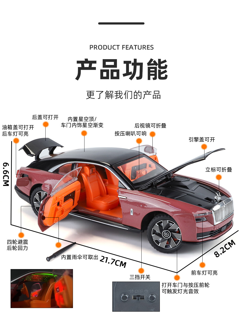 Modelo de coche Weili 1:24 Rolls Shining Alloy Decoración del modelo de coche deportivo