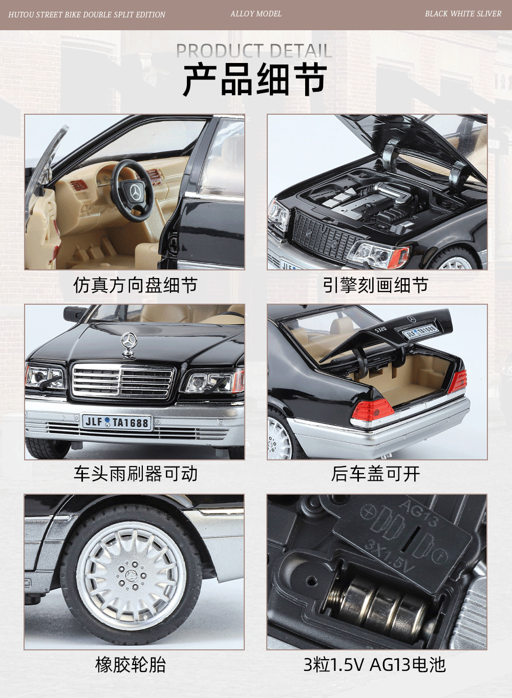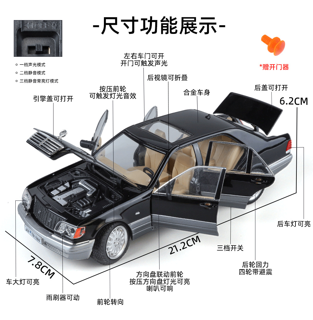 Modelo de coche de aleación Weili 1:24 Daben S320 de doble color coche de juguete de retroceso modelo de efecto de sonido