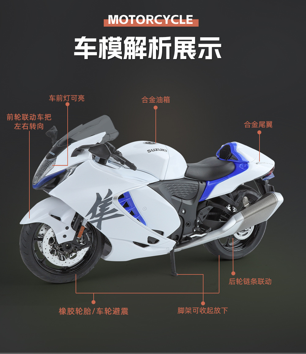 Modelo de coche Huayi 1 a 9 genuino Suzuki Falcon 2022 motocicleta de aleación modelo de iluminación de coche de juguete deslizante