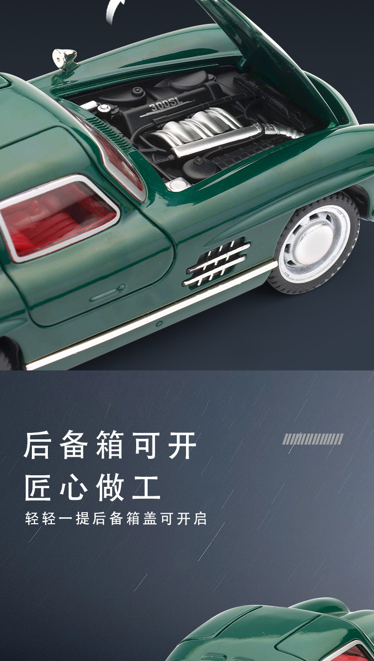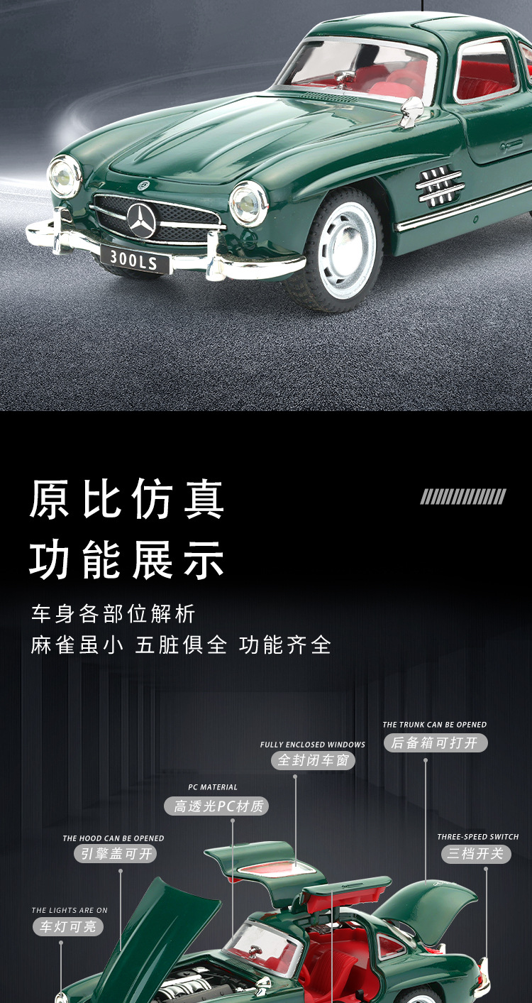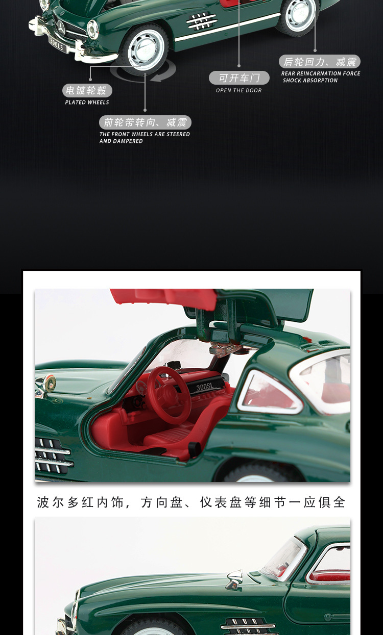 Zhongyuan Xinghejin modelo de coche 1 a 32 Daben 300SL coche clásico retroceso coche de juguete modelo de efecto de sonido