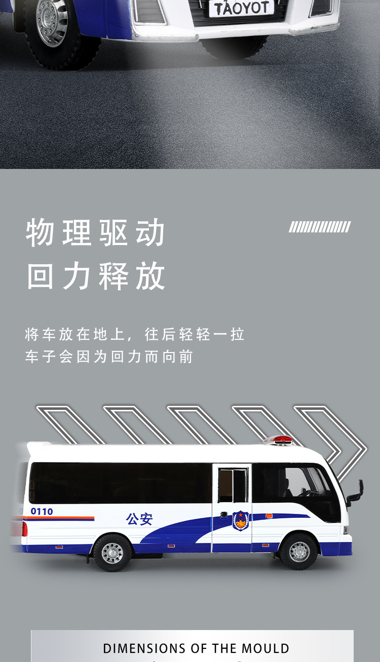 Zhongyuanxing modelo de coche 1:32 Coaster Alloy coche de policía con sonido y luz de retorno coche de juguete modelo de efecto de sonido