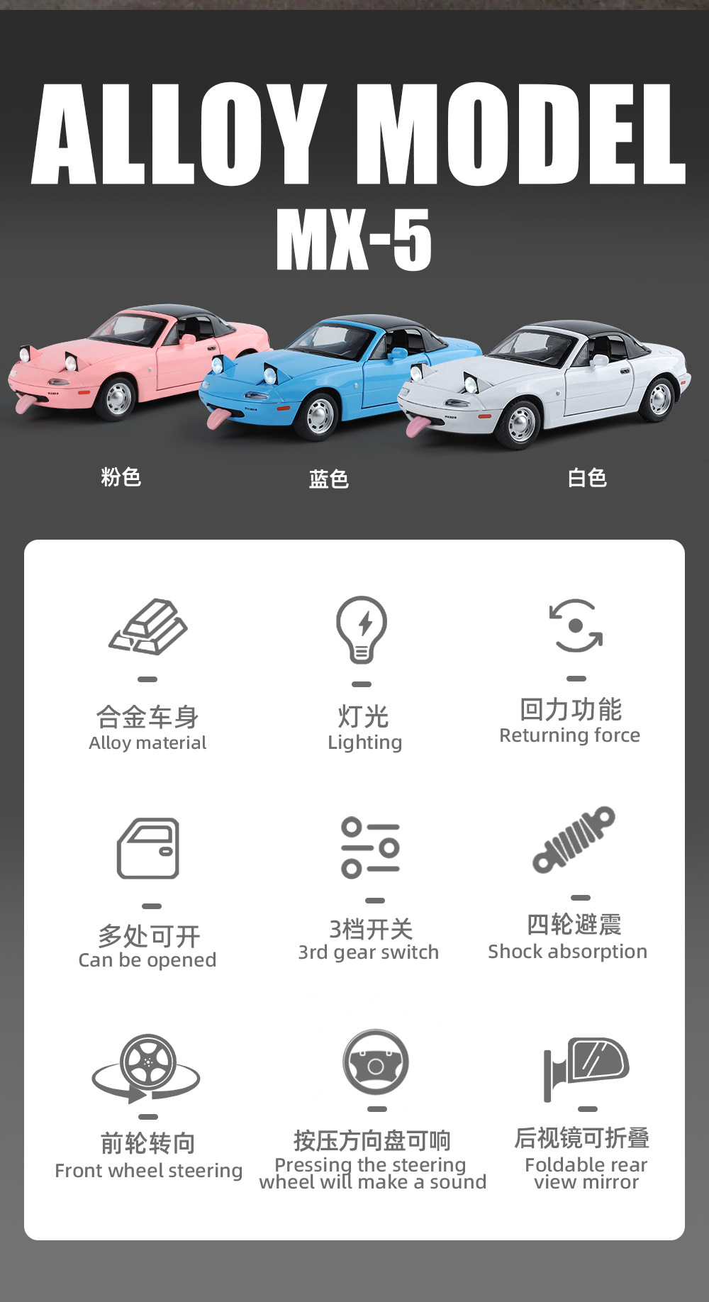 Nuevo modelo de coche de aleación Haodi 1 a 24 Mazda MX5 coche deportivo con retorno de luz y sonido coche de juguete modelo de sonido
