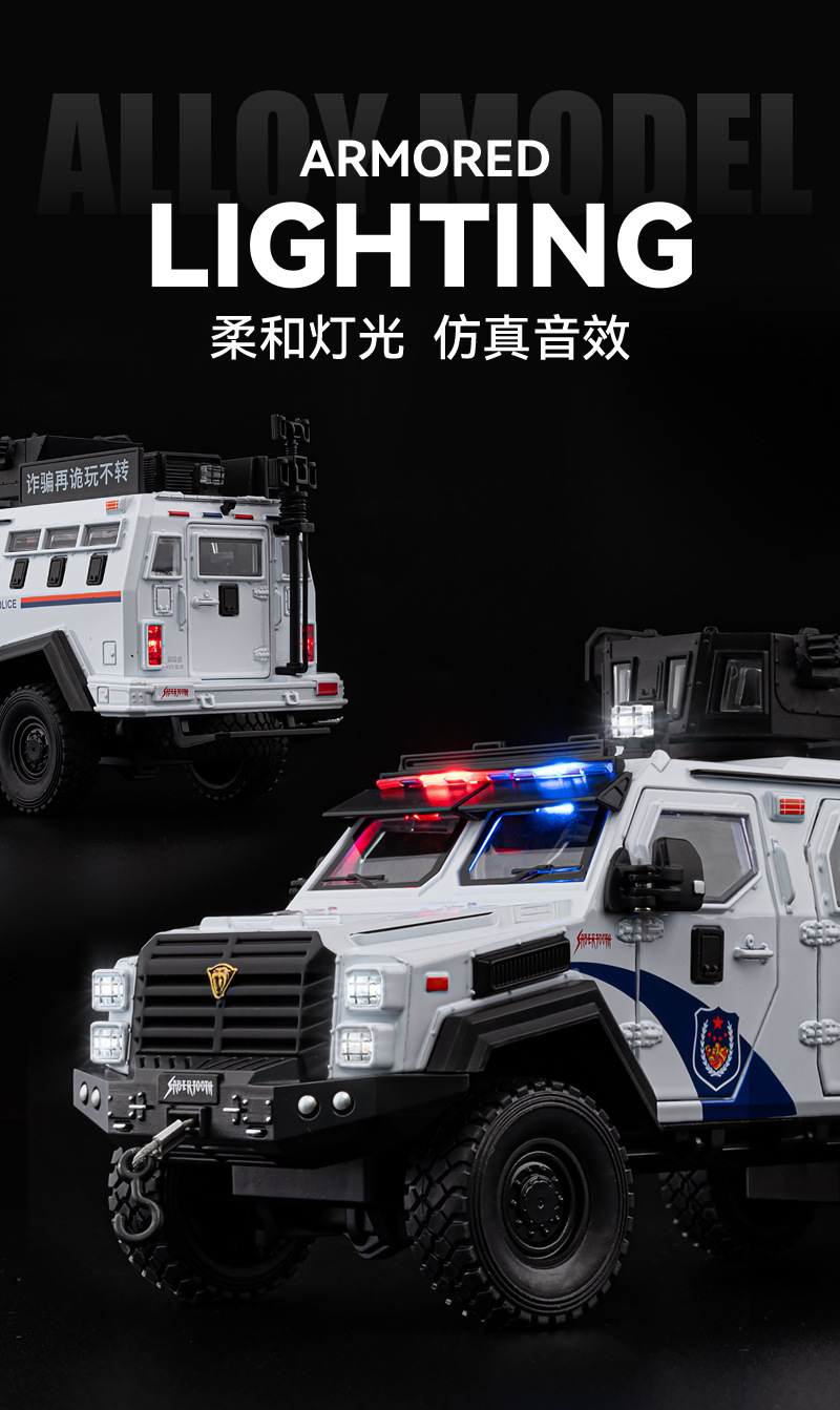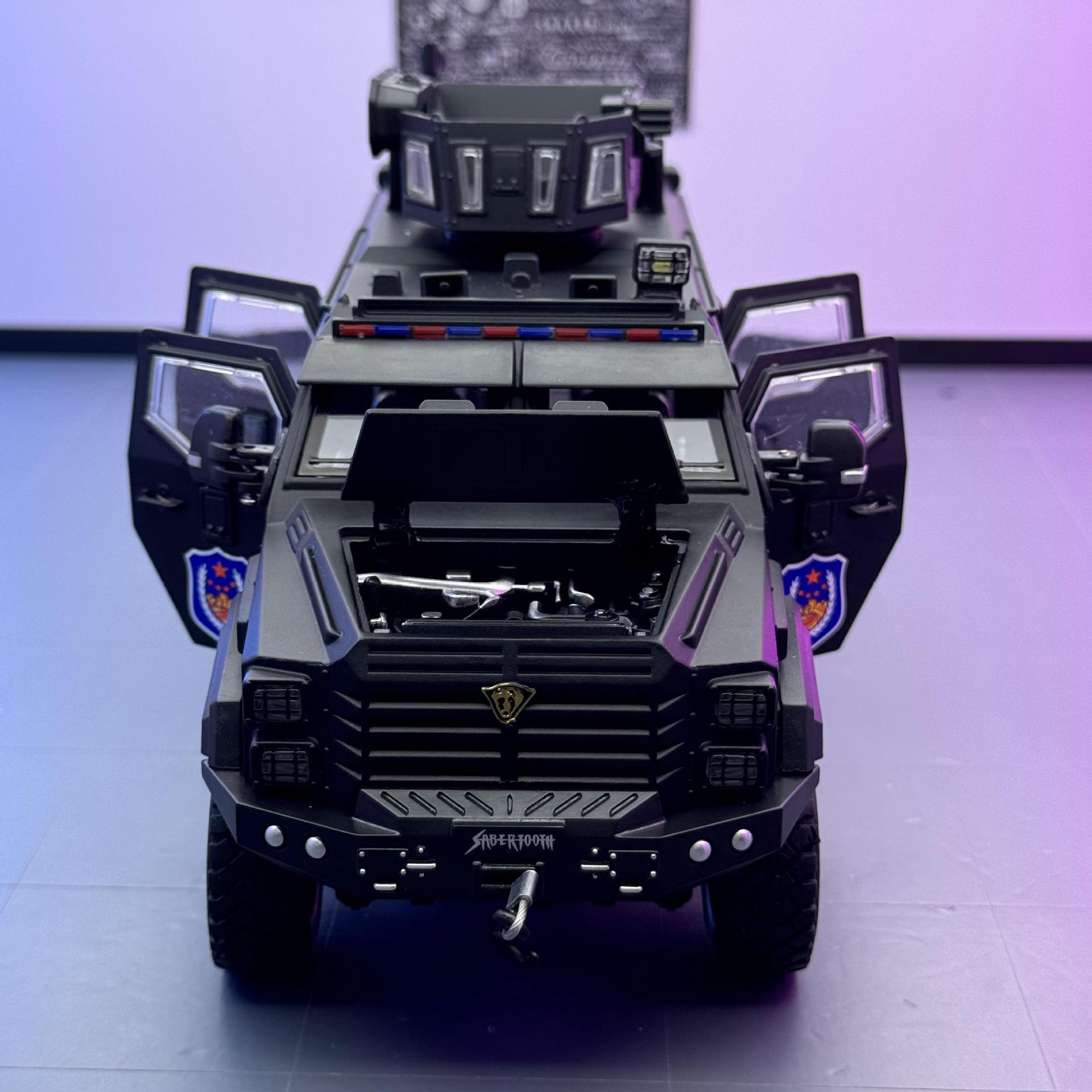 Coche a modelo de coche de aleación genuino 1:24 tigre dientes de sable coche de policía todoterreno luz de sonido retroceso coche de juguete decoración del modelo de sonido