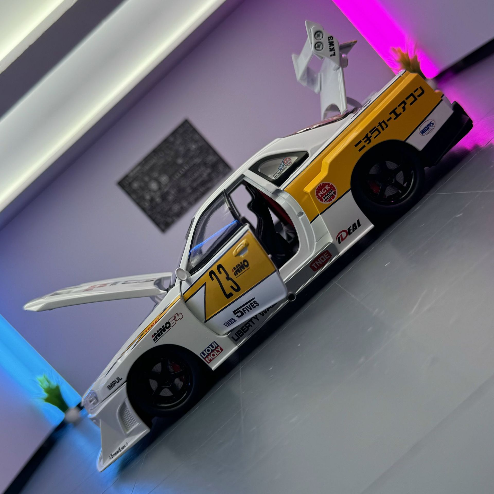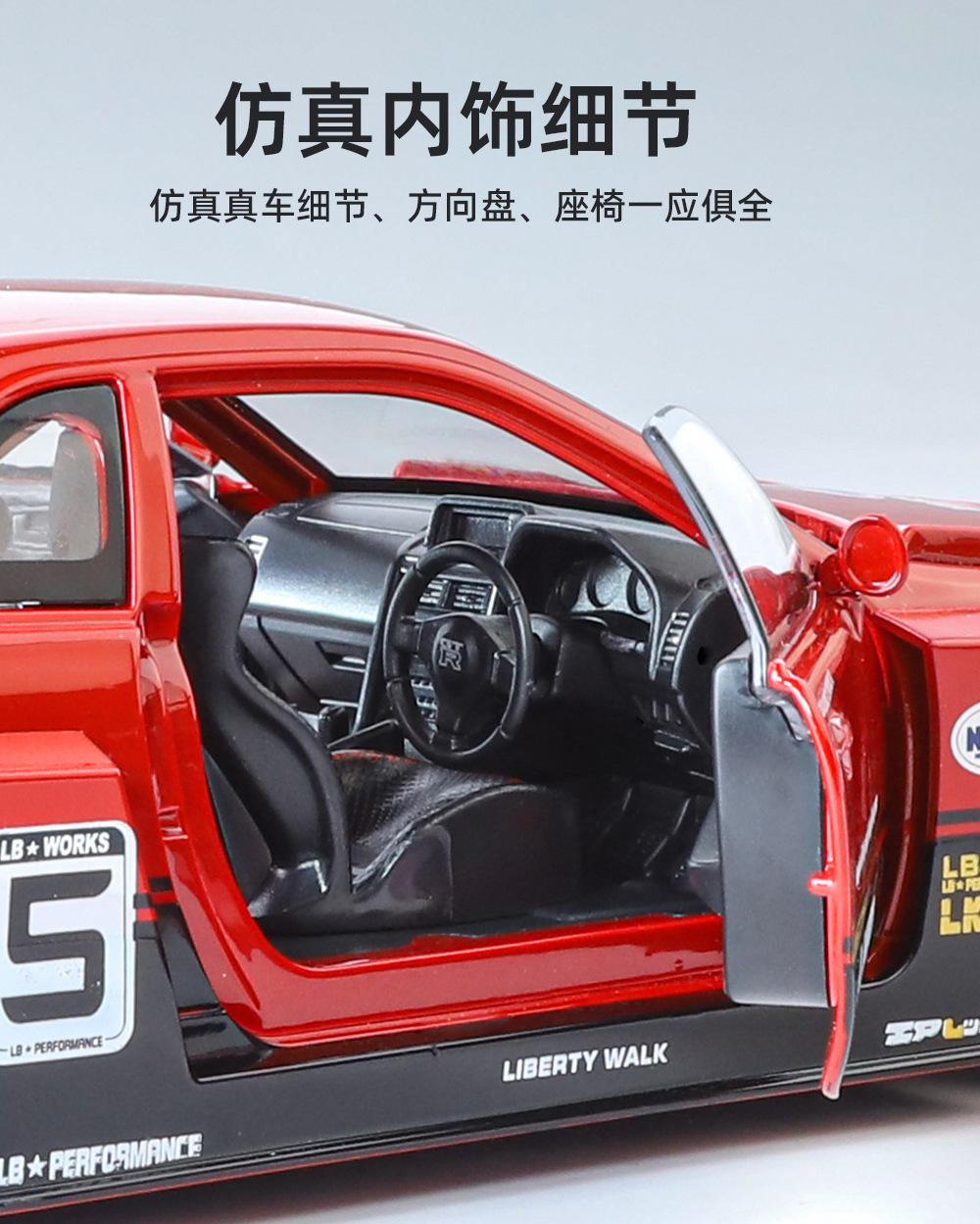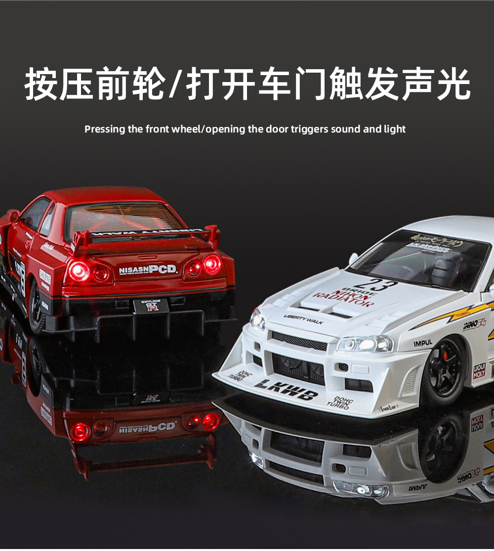 Modelo de coche de aleación Weili 1 a 24 Nissan GTR34 versión modificada del horizonte del coche de juguete de luz y sonido modelo de sonido