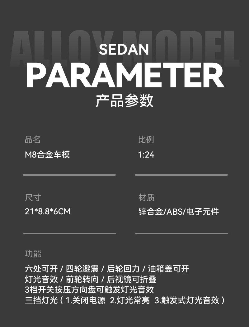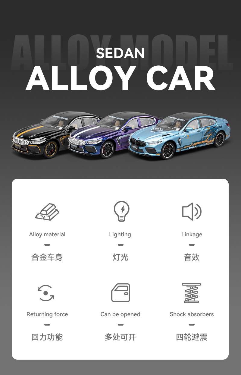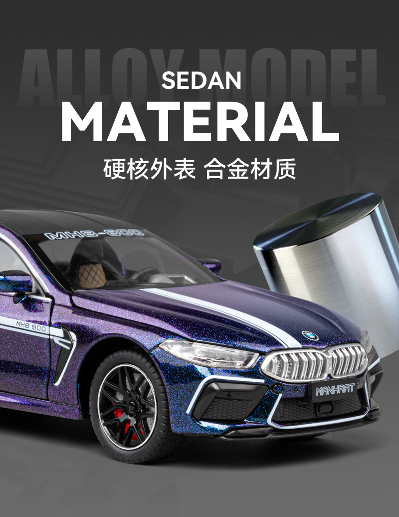 Modelo de coche de aleación 1:24 Baoma M8 Thunder Edition Coche deportivo con sonido y luz de retroceso Coche de juguete Decoración del modelo de sonido