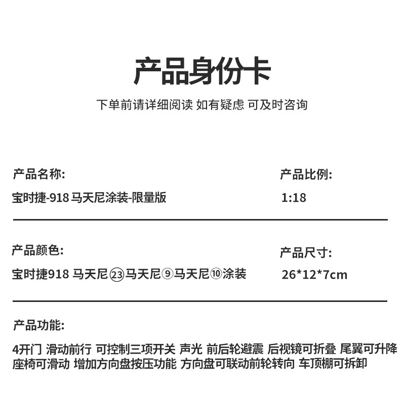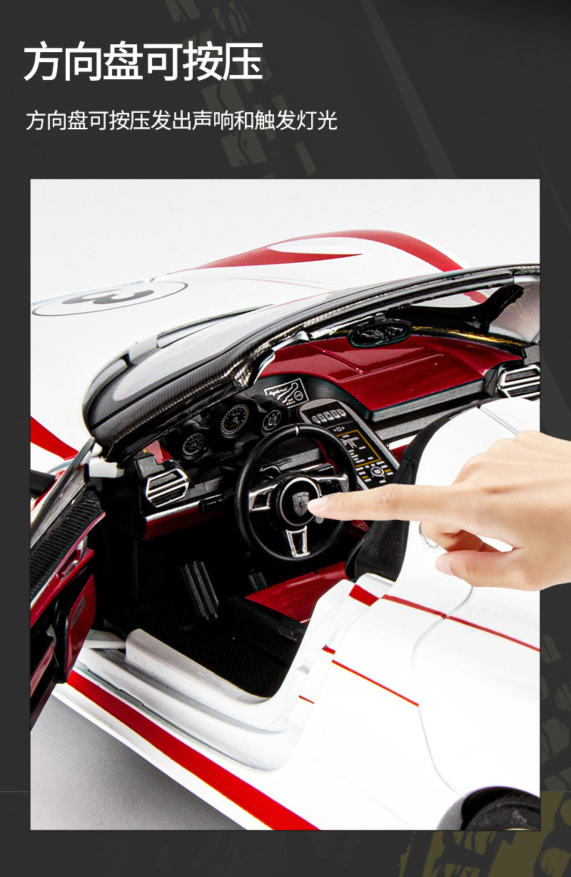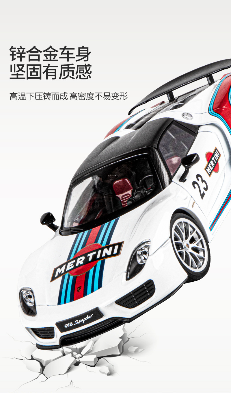 OK modelo de coche de aleación 1 a 18 Martini 918 roadster con sonido y luz, modelo de sonido de coche de juguete deslizante