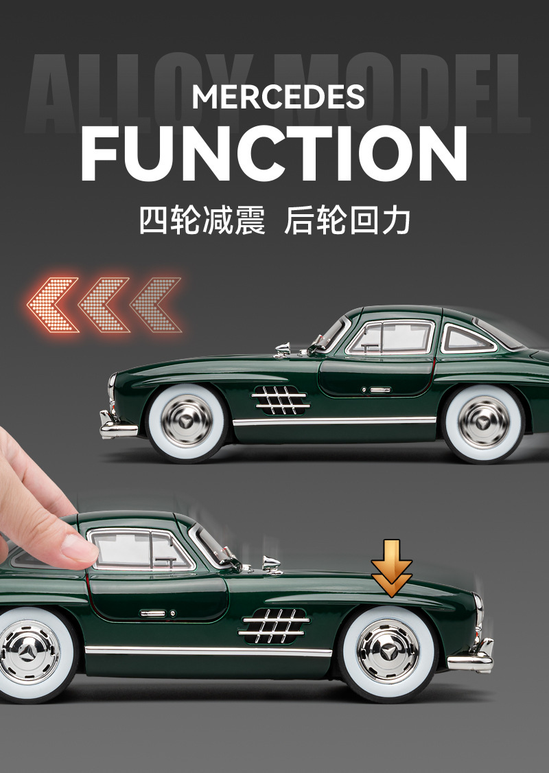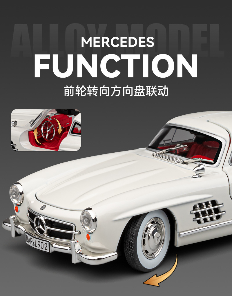 Modelo de coche de aleación 1 a 24 Big Ben coche clásico 300SL con sonido y luz, modelo de sonido de coche de juguete