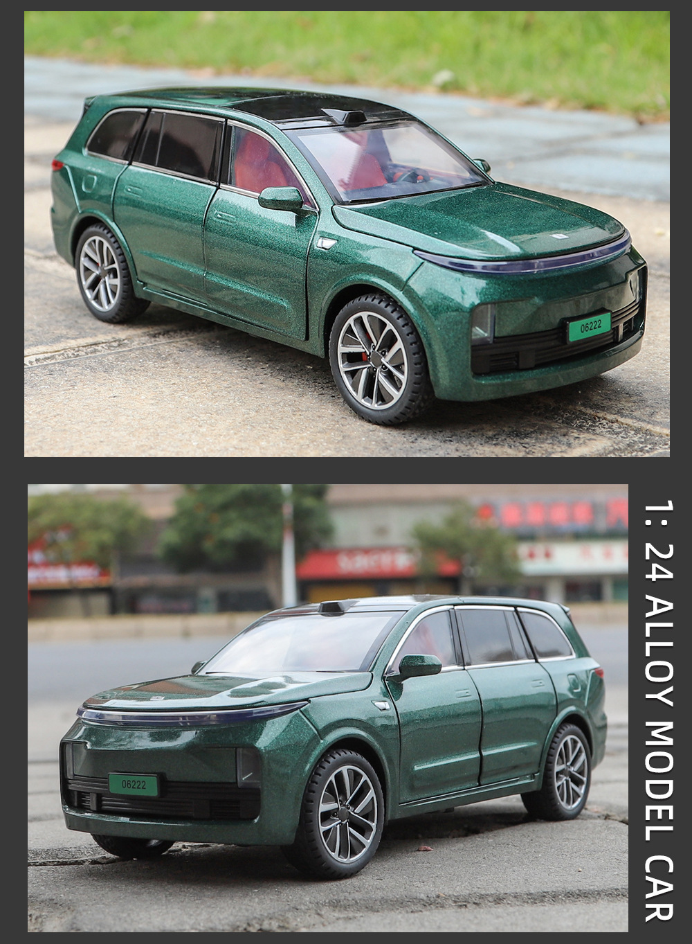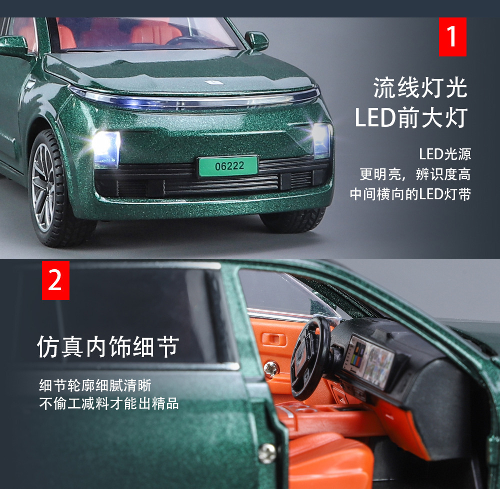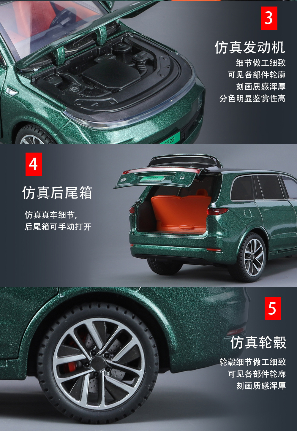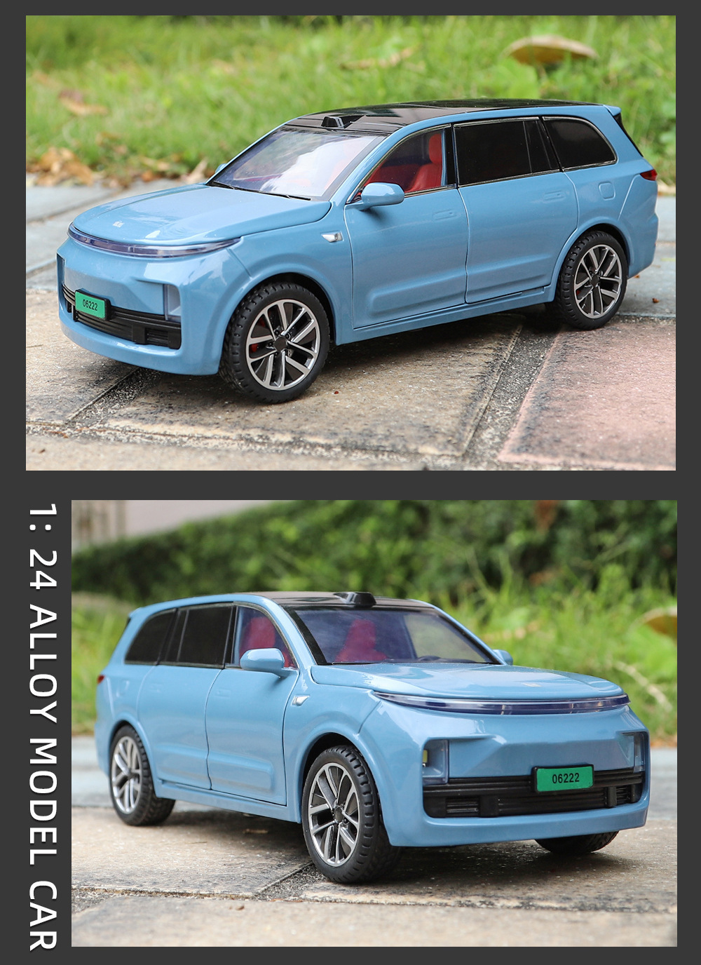 Zhiguan modelo de coche de aleación de simulación 1:24 ideal L9 nueva energía Tire hacia atrás vehículo todoterreno sonido y luz modelo de coche de juguete adornos