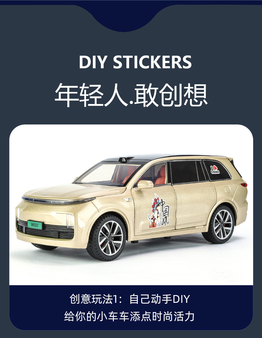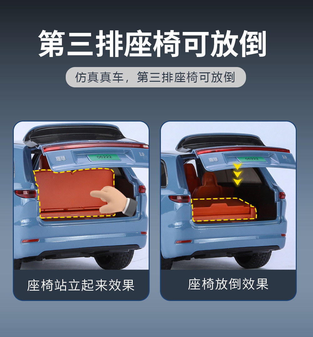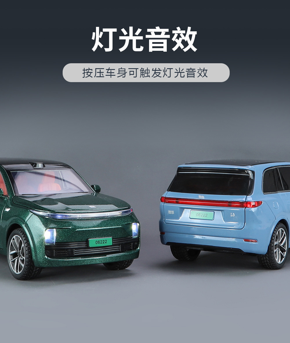 Zhiguan modelo de coche de aleación de simulación 1:24 ideal L9 nueva energía Tire hacia atrás vehículo todoterreno sonido y luz modelo de coche de juguete adornos
