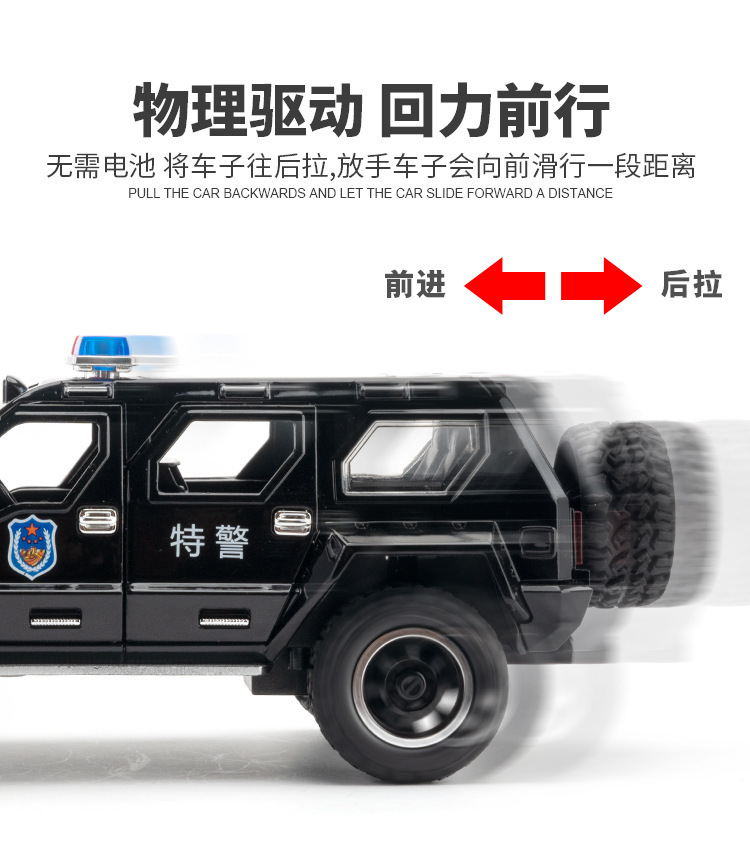 Modelo de coche de aleación de simulación de coches 1:24 George Barton Tire hacia atrás coche de policía con sonido y luz modelo de coche de juguete colección de decoración