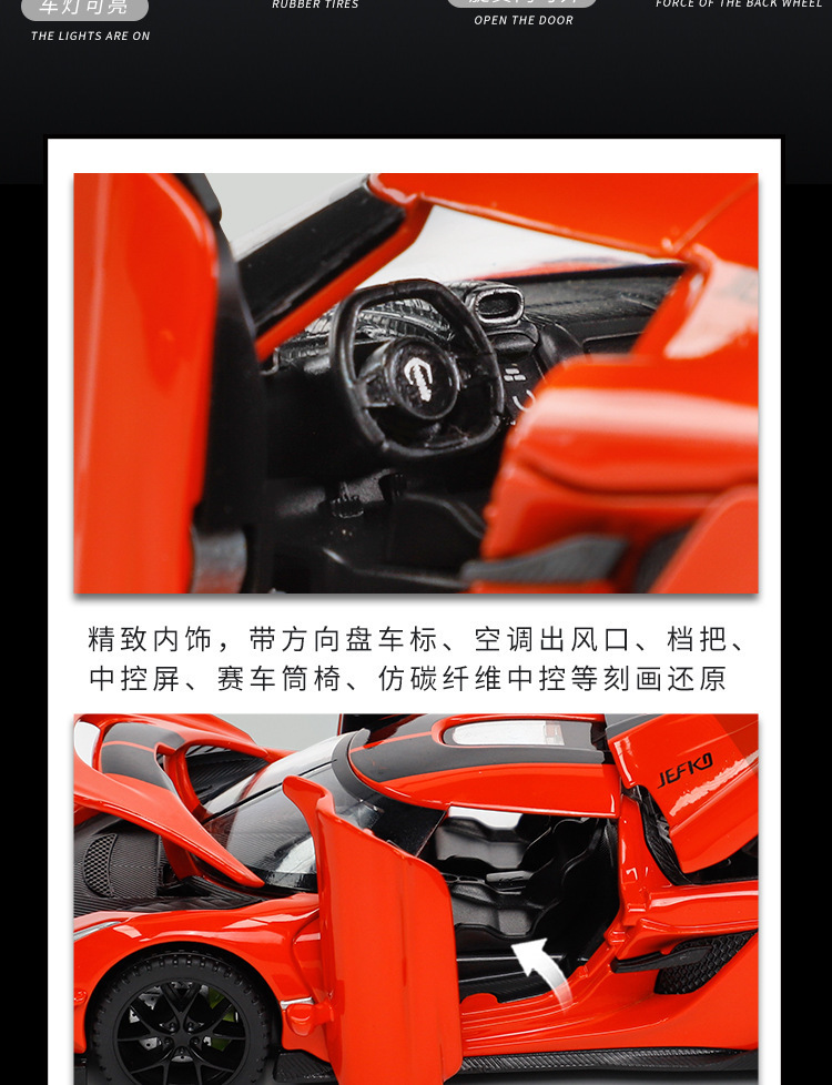 Zhongyuan xinghejin modelo de coche 1:32 coniseger Tire hacia atrás coche deportivo coche de juguete con luz música modelo adornos