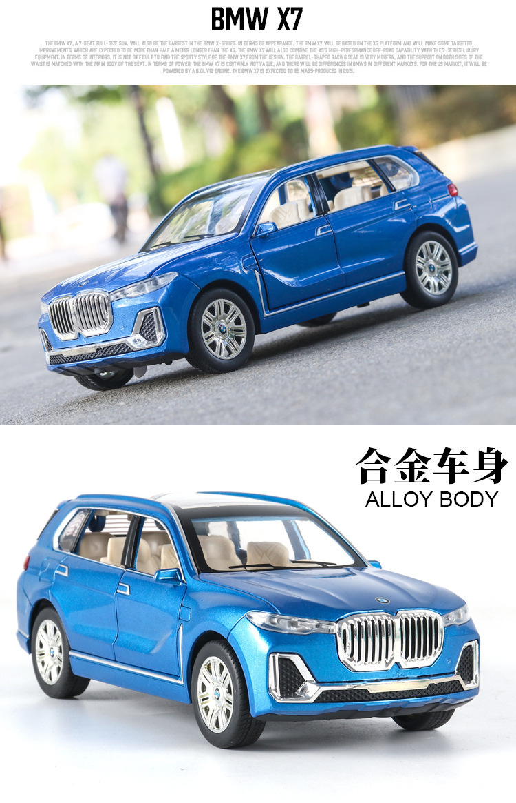 (A granel) modelo de coche de aleación de automóvil nuevo baoma X7 vehículo todoterreno con luz de sonido tire de nuevo modelo de música de coche de juguete