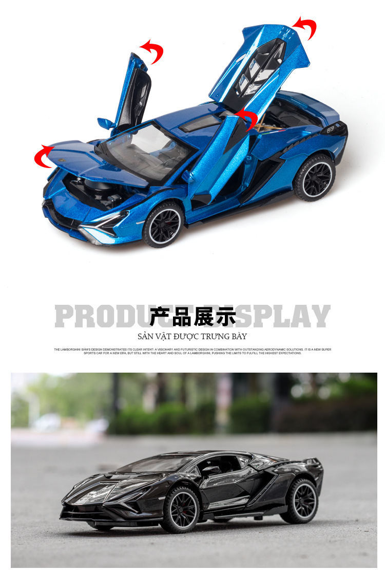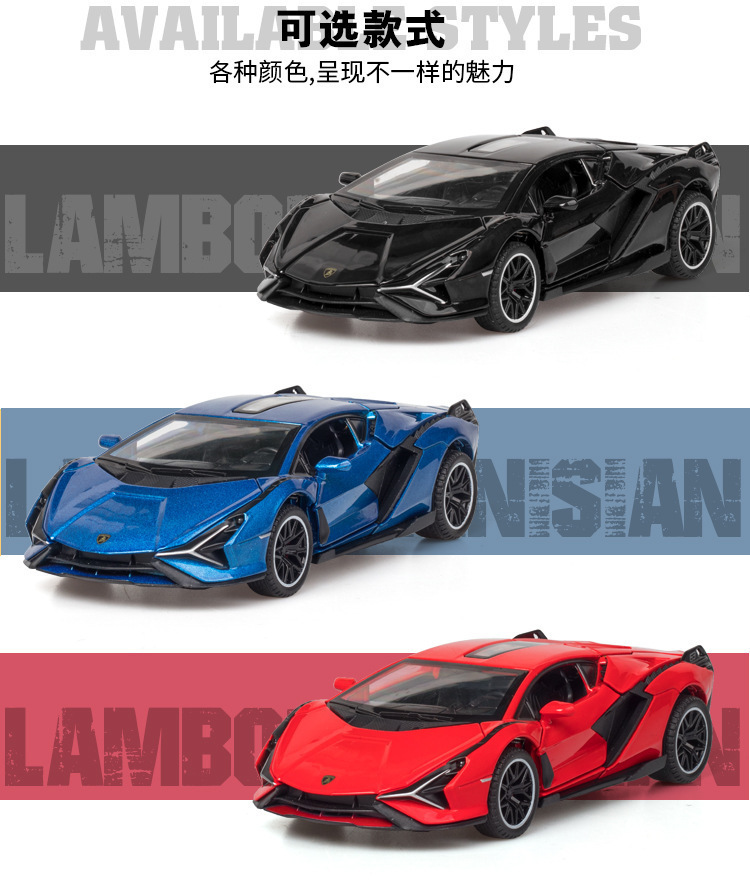 (A granel) Jiaye modelo de coche de aleación 1:32 Lanbo relámpago coche deportivo Tire hacia atrás sonido y luz apertura de la puerta Modelo de juguete adornos