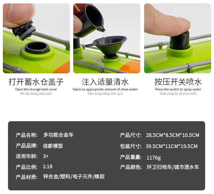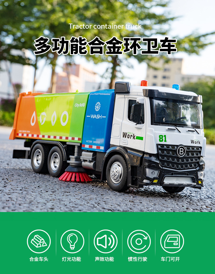 Jiadu aleación coche modelo 1:24 rociadores barrido saneamiento ingeniería vehículo inercia sonido y luz modelo de coche de juguete para niños