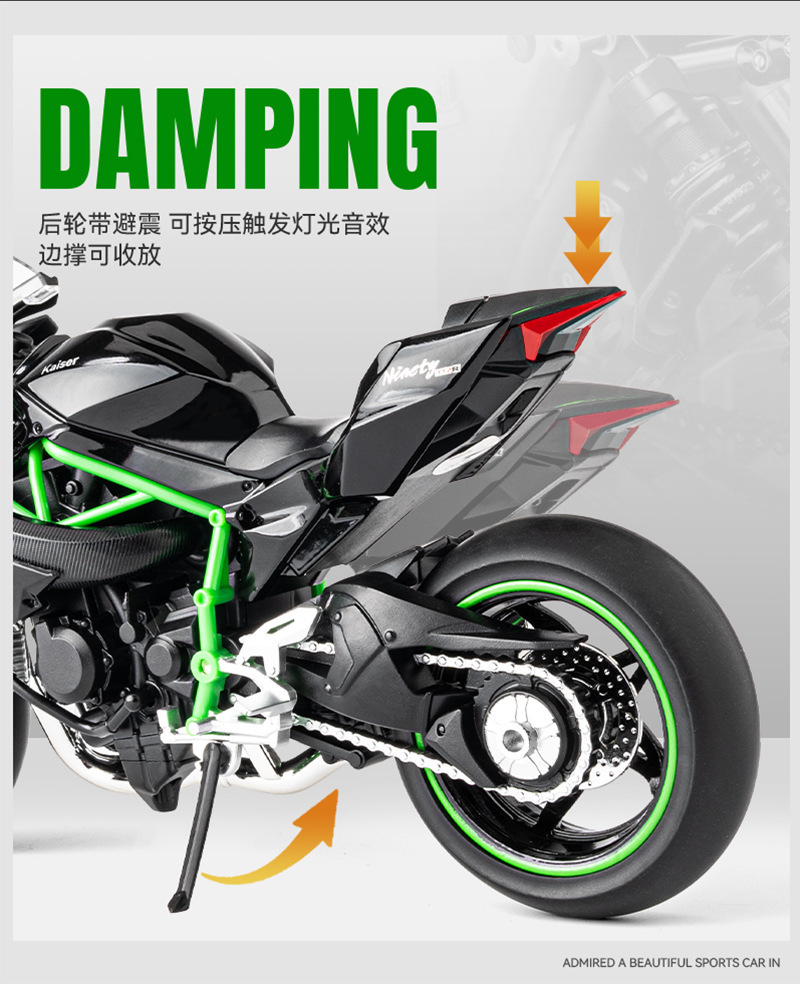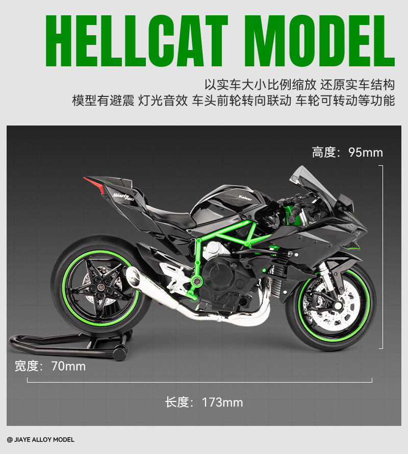 Jiaye aleación 1 :12 ninja H2R motocicleta cinturón deslizante sonido y luz coche de juguete música modelo decoración colección