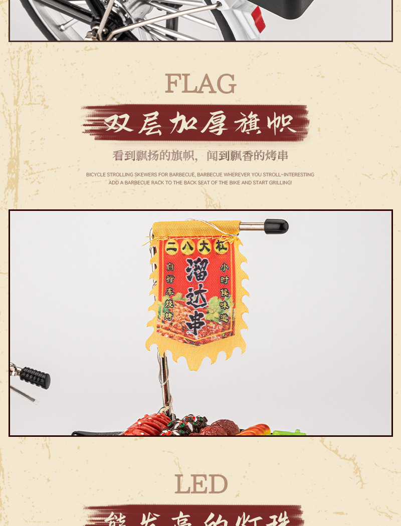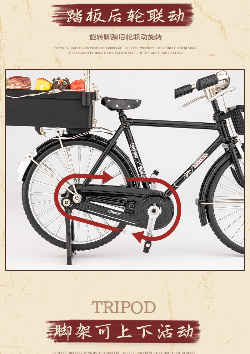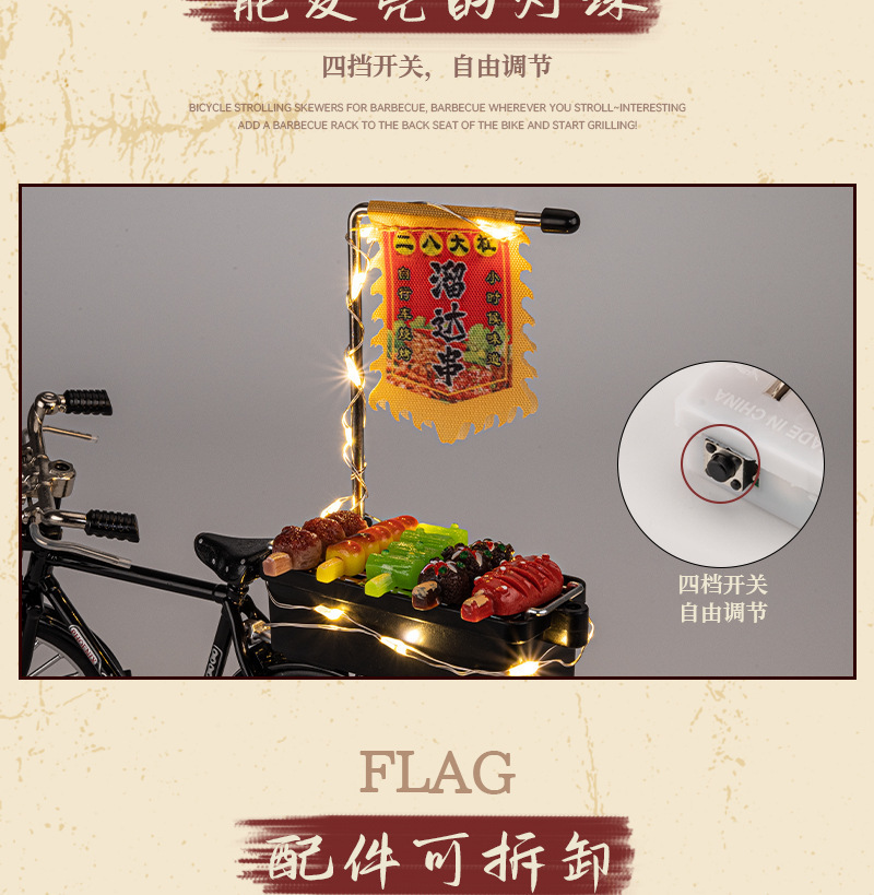 Jiaye aleación 1:10 28 bares mercado nocturno barbacoa bicicleta con luz coche de juguete modelo deslizante adornos