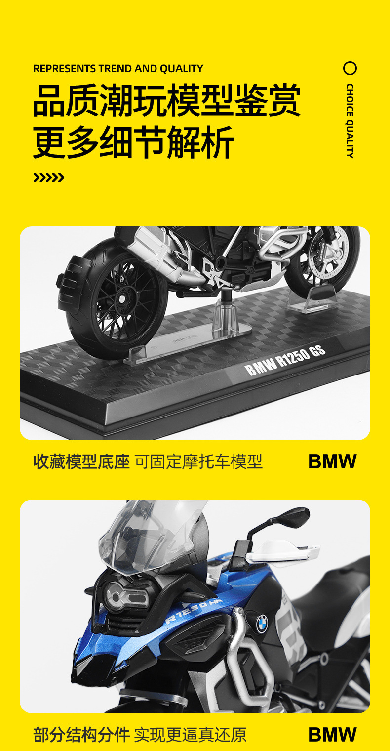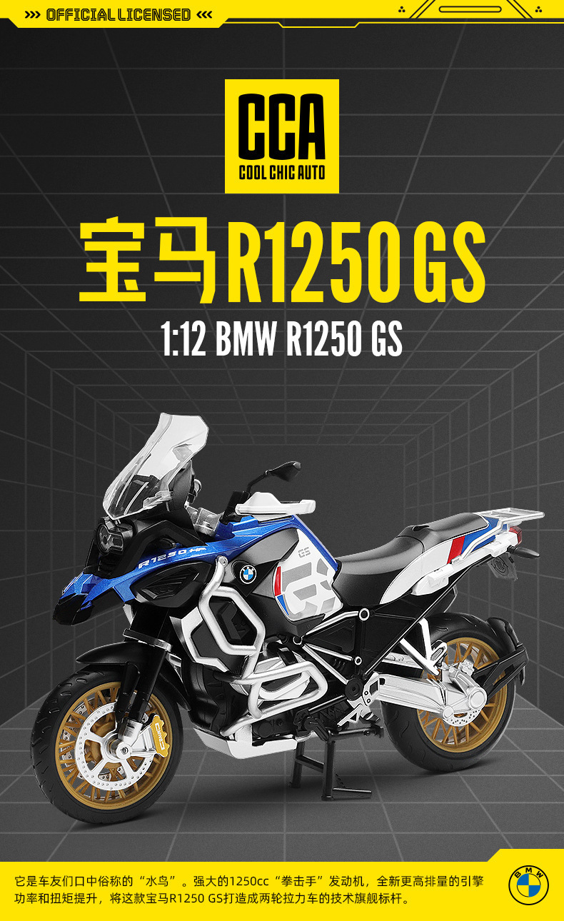 Modelo de coche de aleación caipo 1 a 12 BMW R1250GS motocicleta deslizante cinturón libre de sonido y luz modelo de coche de juguete adornos