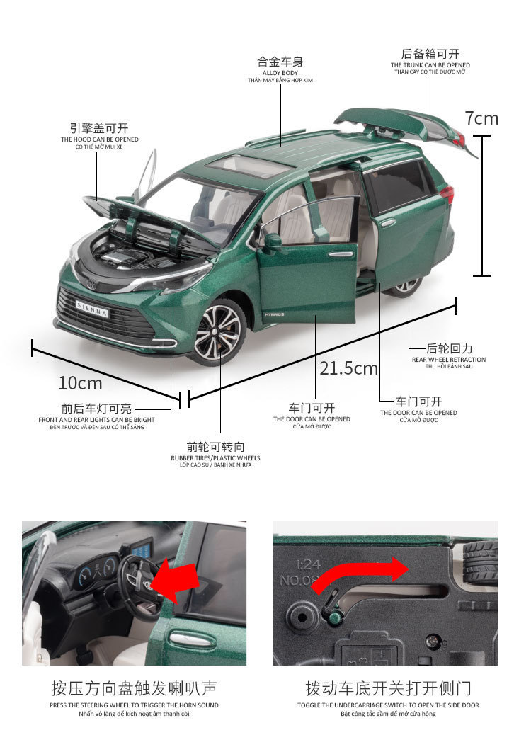 Zhiguan Alloy Car Model 1:24 Saina Business Vehicle Echo Light Sound Toy Car Music Model Adornos Venta al por mayor