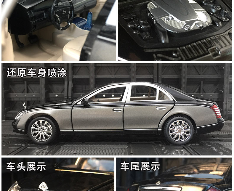 Modelo de coche de aleación XLG 1:24 Maybach 62s coche de negocios tire de la puerta trasera de sonido y luz de los hombres modelo de coche de juguete Decoración