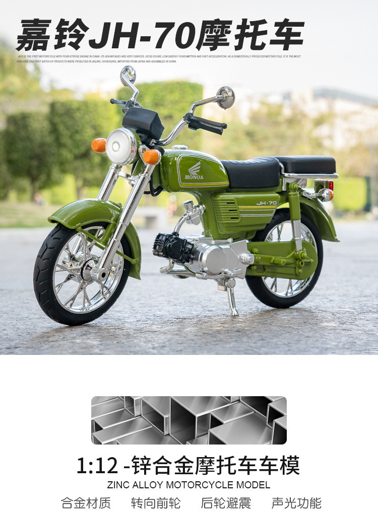 Huayi modelo de coche de aleación 1: 10 jialing JH-70 motocicleta luz de sonido coche de juguete modelo de música colección de decoración