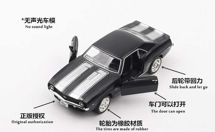 Marco Polo aleación modelo de coche 1:36 Chevrolet Camaro 1969 retro coche deportivo tire hacia atrás luz silenciosa modelo de juguete