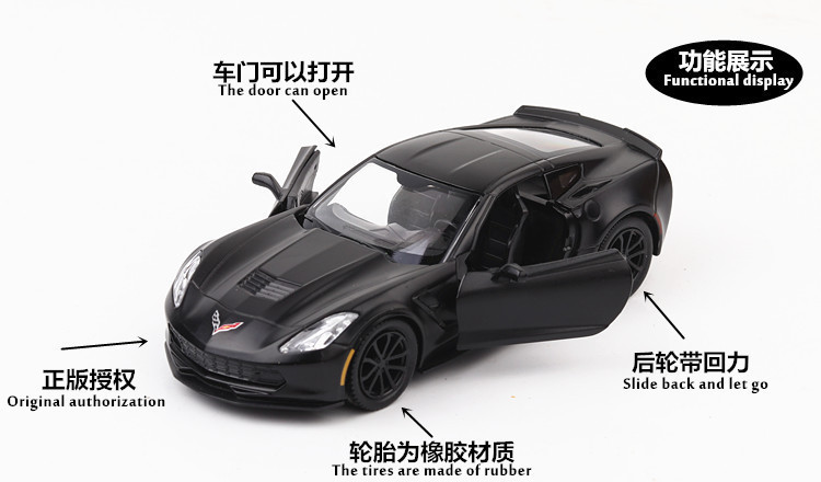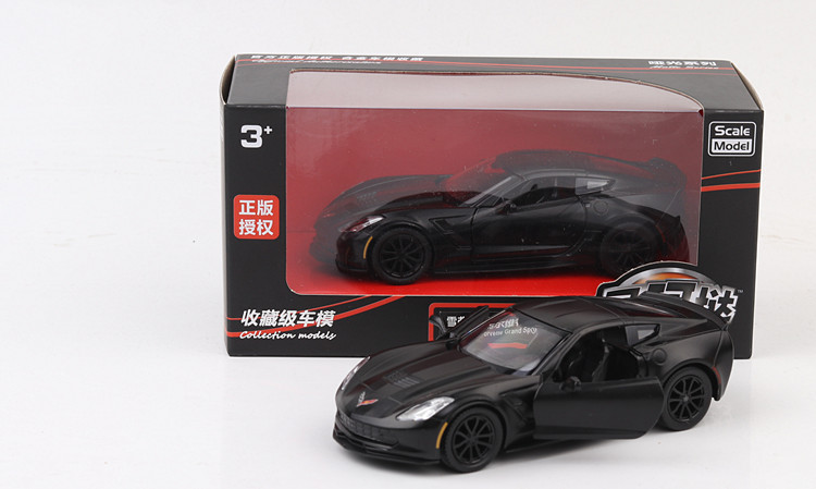 Modelo de coche de aleación de Marco 1:36 Corvette C7 coche deportivo Tire hacia atrás silenciosa luz modelo de coche de juguete adornos