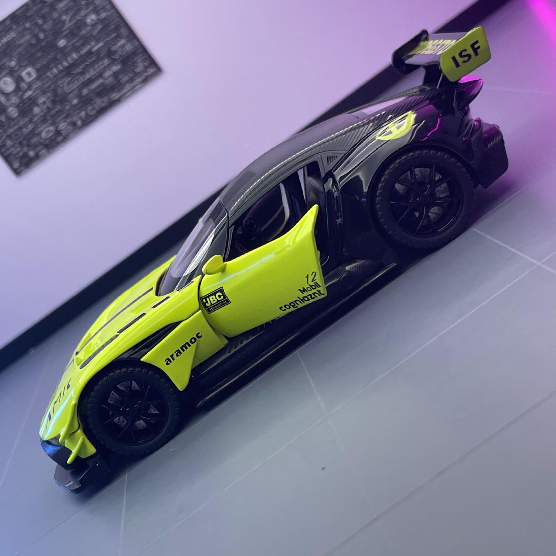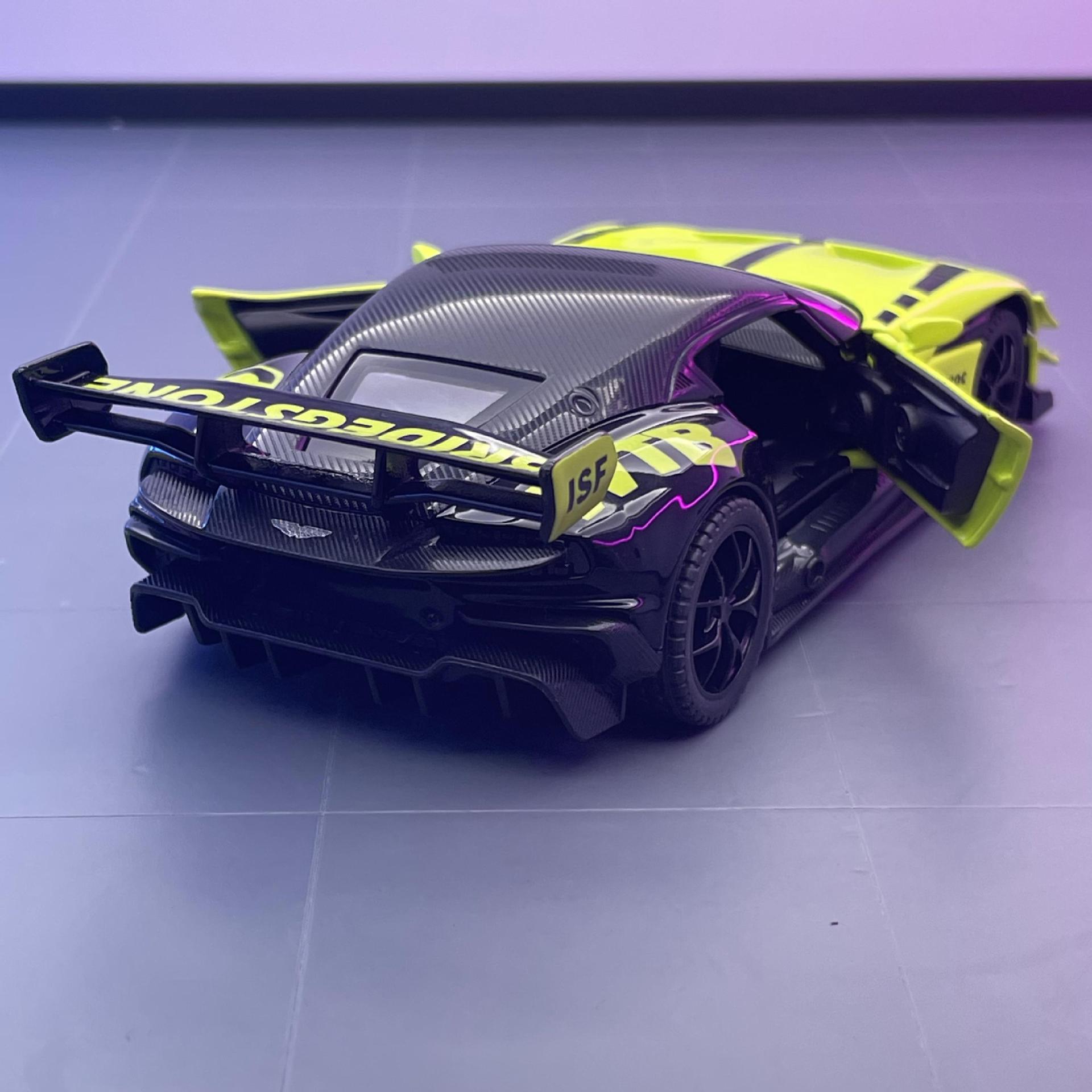 Zhongyuan xinghejin coche modelo 1: 32 Martin Vulcan deportes coche pista versión 3 puerta abierta tire hacia atrás modelo de juguete caja de polvo