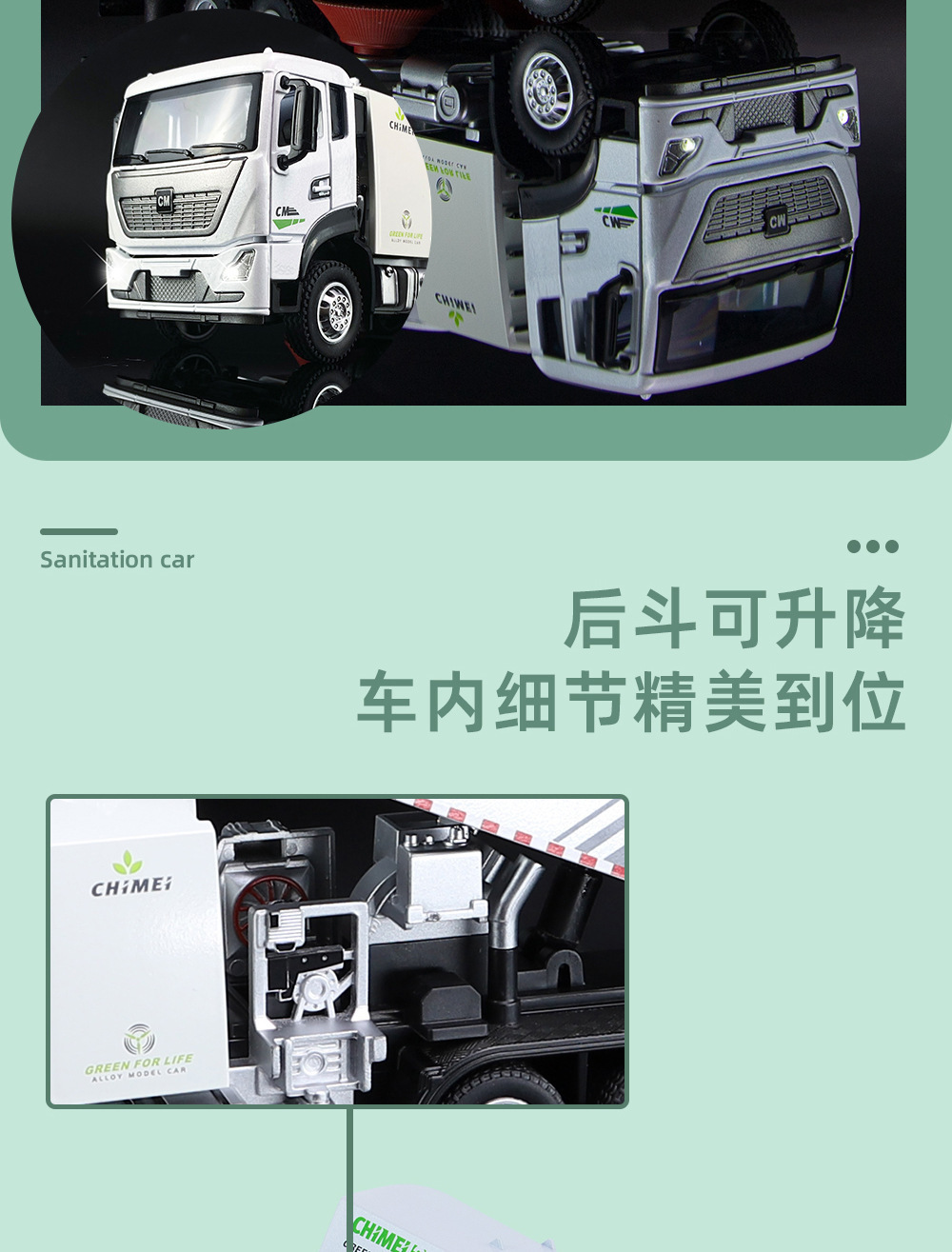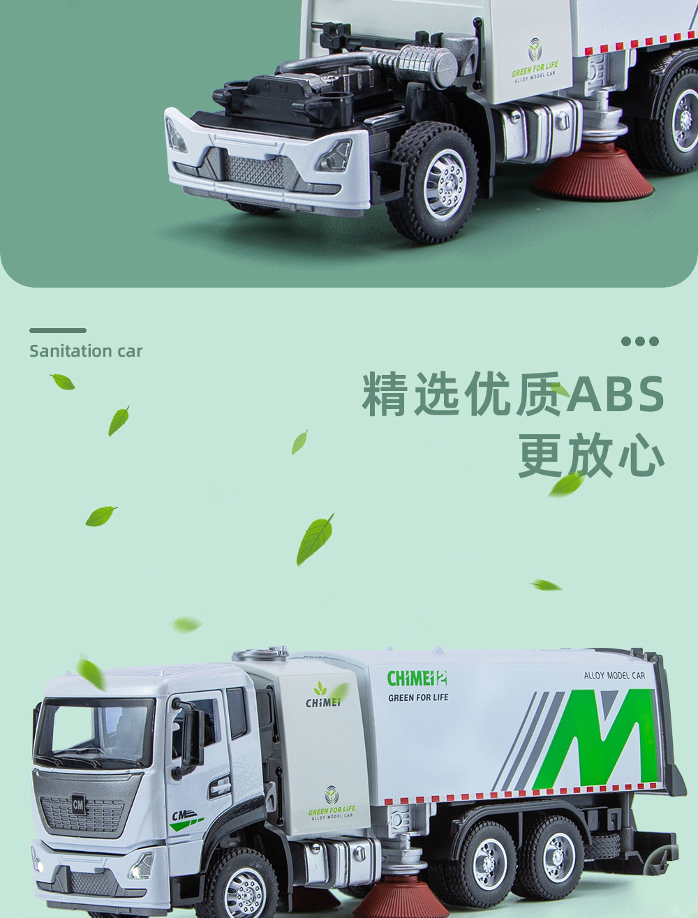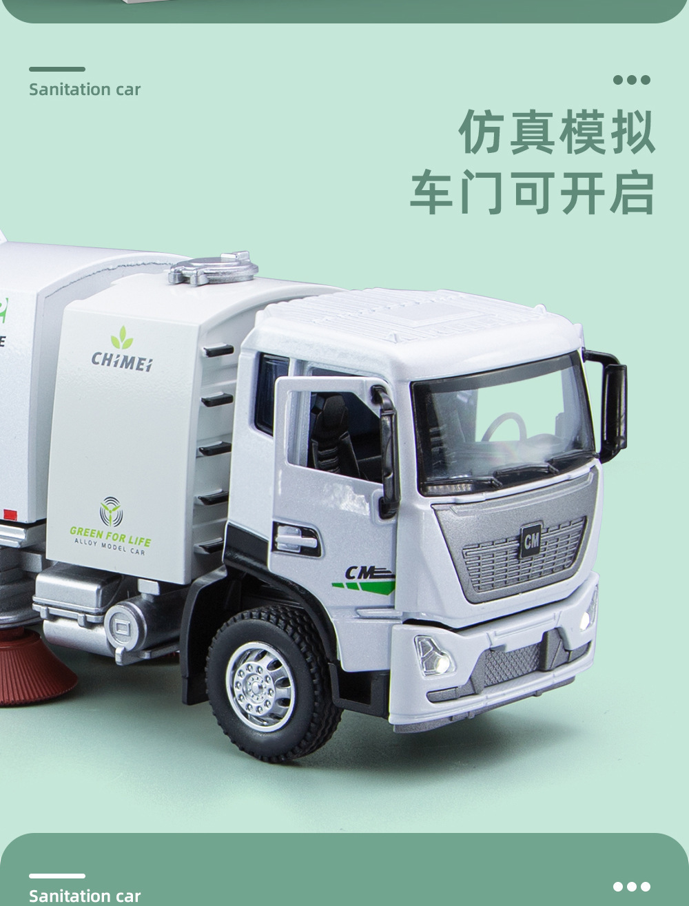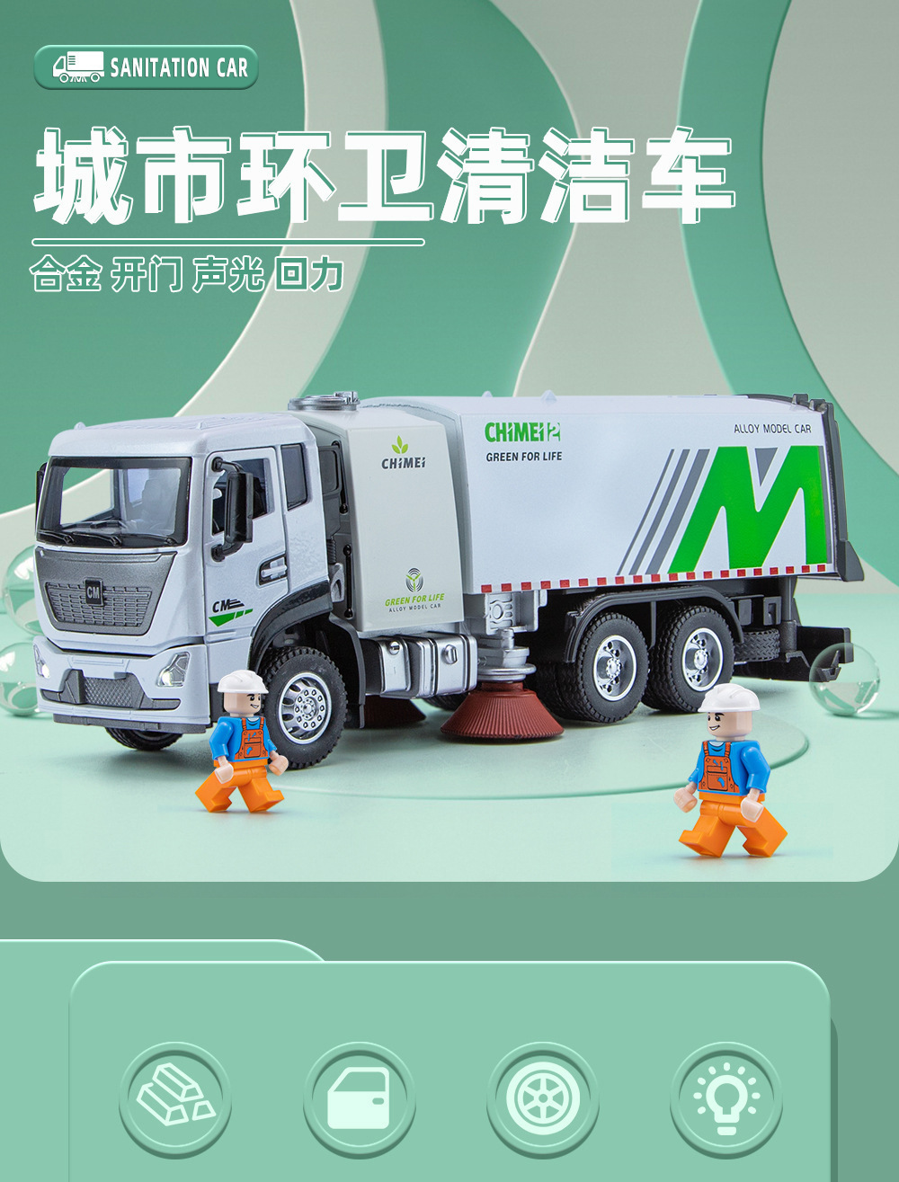 Chimei aleación modelo de coche 1:32 ciudad saneamiento limpieza coche Tire hacia atrás sonido y luz juguete rociador modelo adornos