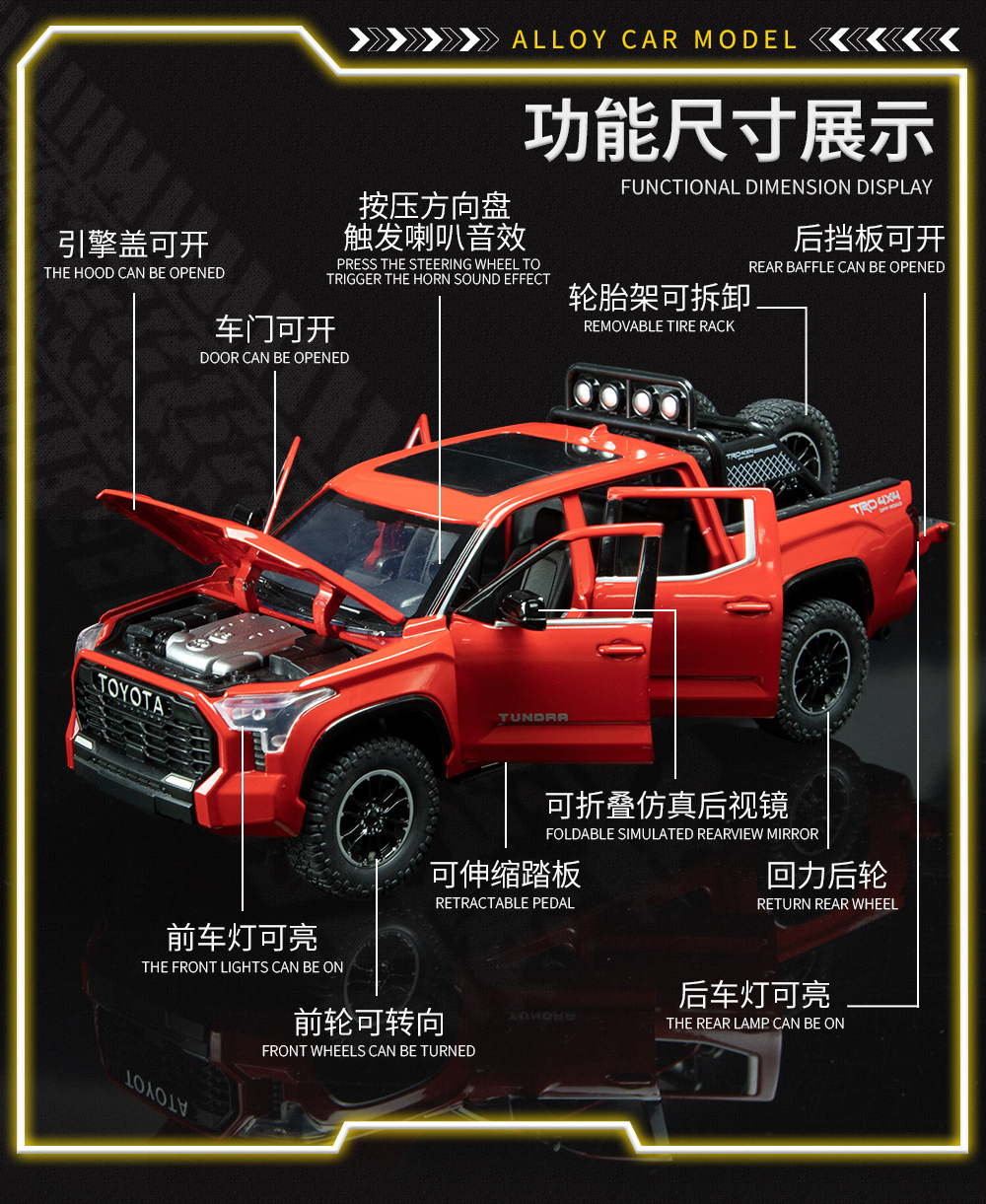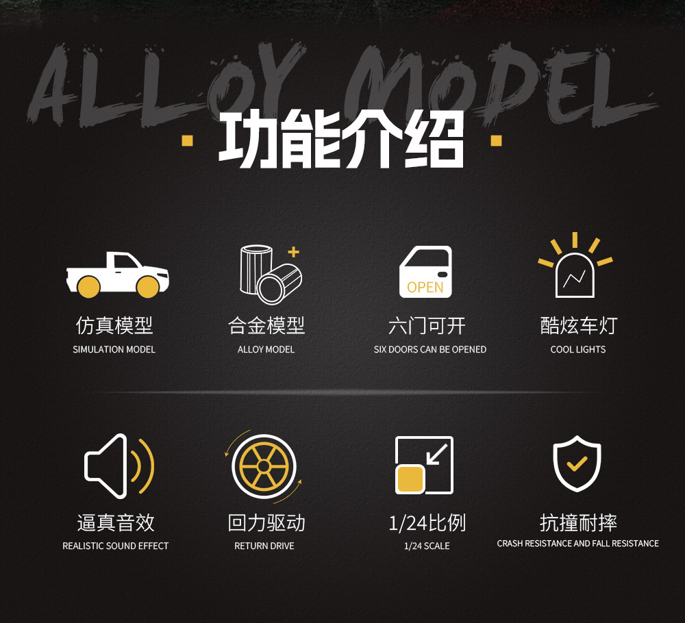 Zhiguan aleación coche modelo 1:24 Tantu todoterreno camioneta tire de la puerta trasera con sonido juguete coche música modelo adornos