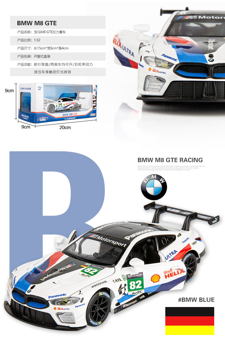Marke modelo de coche de aleación 1:32 BMW M8 coche deportivo Tire hacia atrás versión de la raza Puerta Abierta sonido y luz modelo de coche de juguete adornos